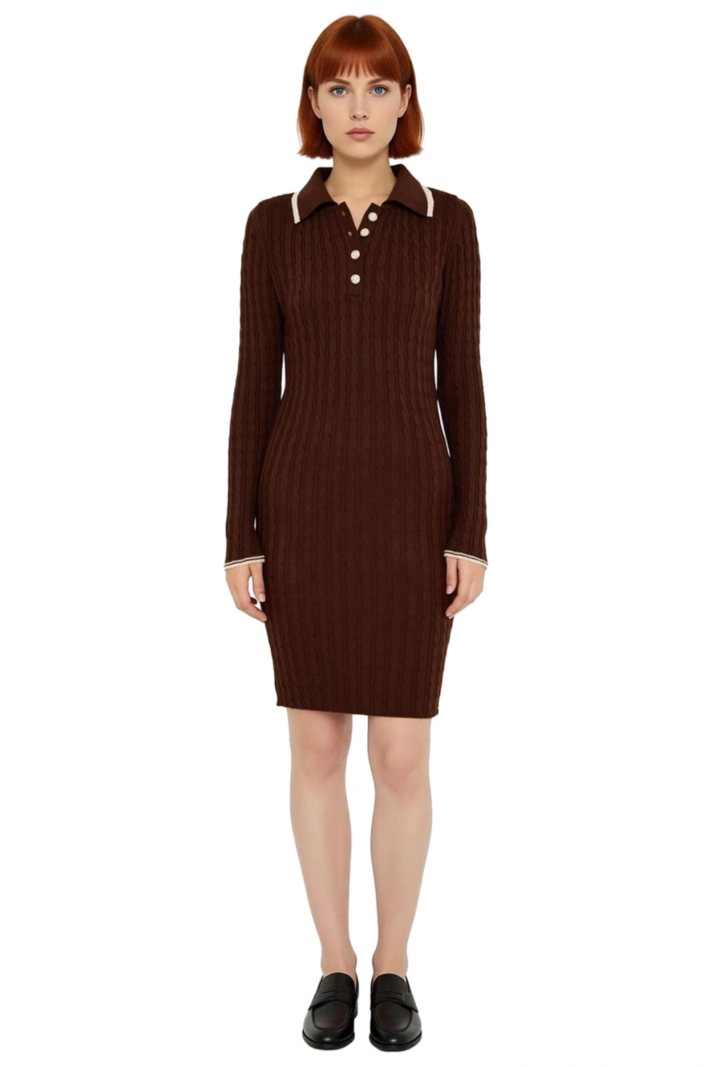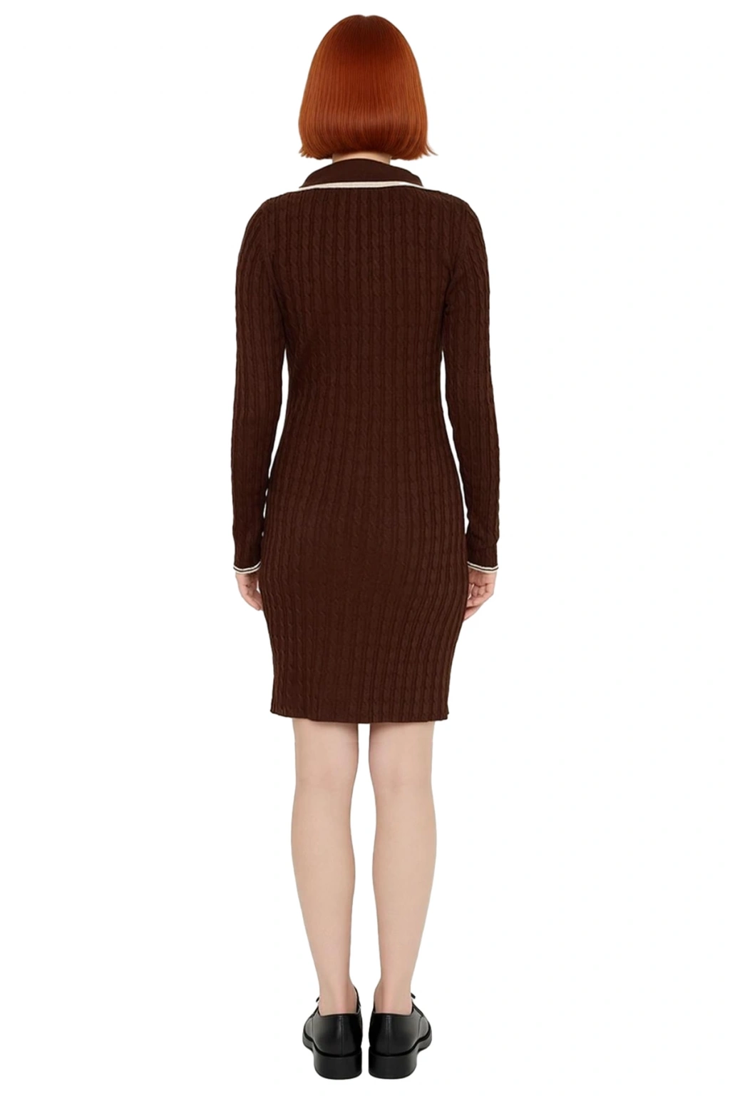 Ürün Özellikleri: Bodycon kalıp, akrilik materyal, düz desen, polo yaka, standart kol, triko kumaş, kahverengi renk, ince kalınlık, kısa / mini boy, casual/günlük ortam.