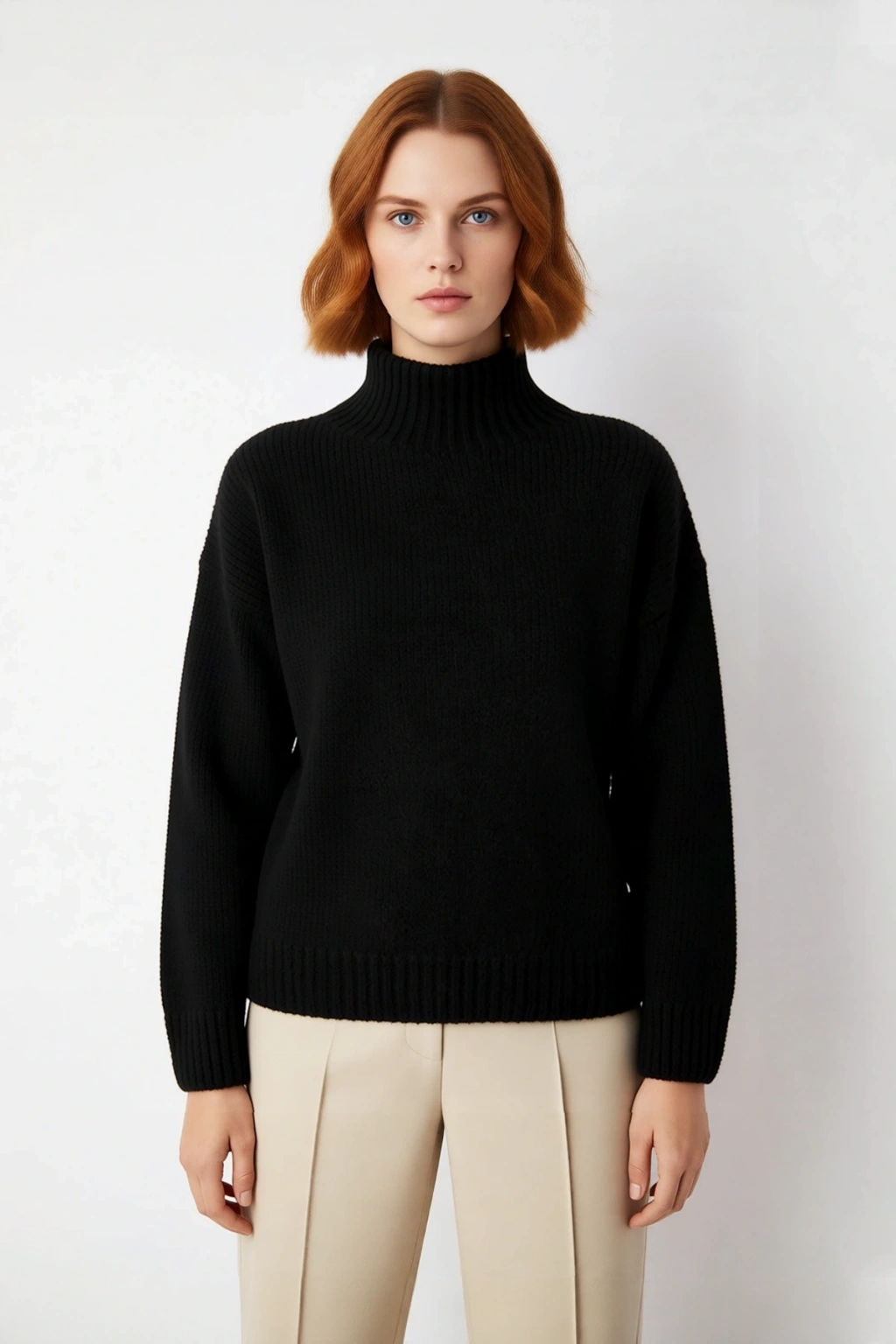 Bu basic siluetli ve regular boy kazak, her vücut tipine uyum sağlayan rahat kesimiyle günlük kullanım için idealdir. Skinny jeanler, deri taytlar veya şık eteklerle kombinleyerek farklı tarzlar yaratabilirsiniz. Kış ve sonbahar aylarında hem iç mekanlarda hem de dışarıda sıcak ve şık kalmak isteyenler için mükemmel bir seçimdir.