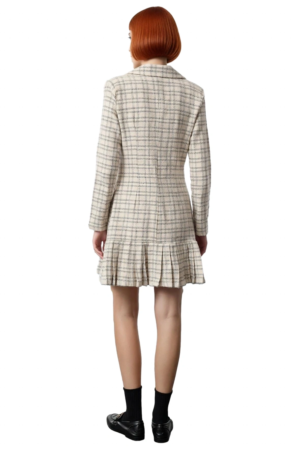 Ürün Özellikleri: Ceket Elbise kalıp, %100 Pamuk materyal, Ekose / Kareli desen, Ceket Yaka, Uzun standart kol, Dokuma kumaş, Ekru renk.