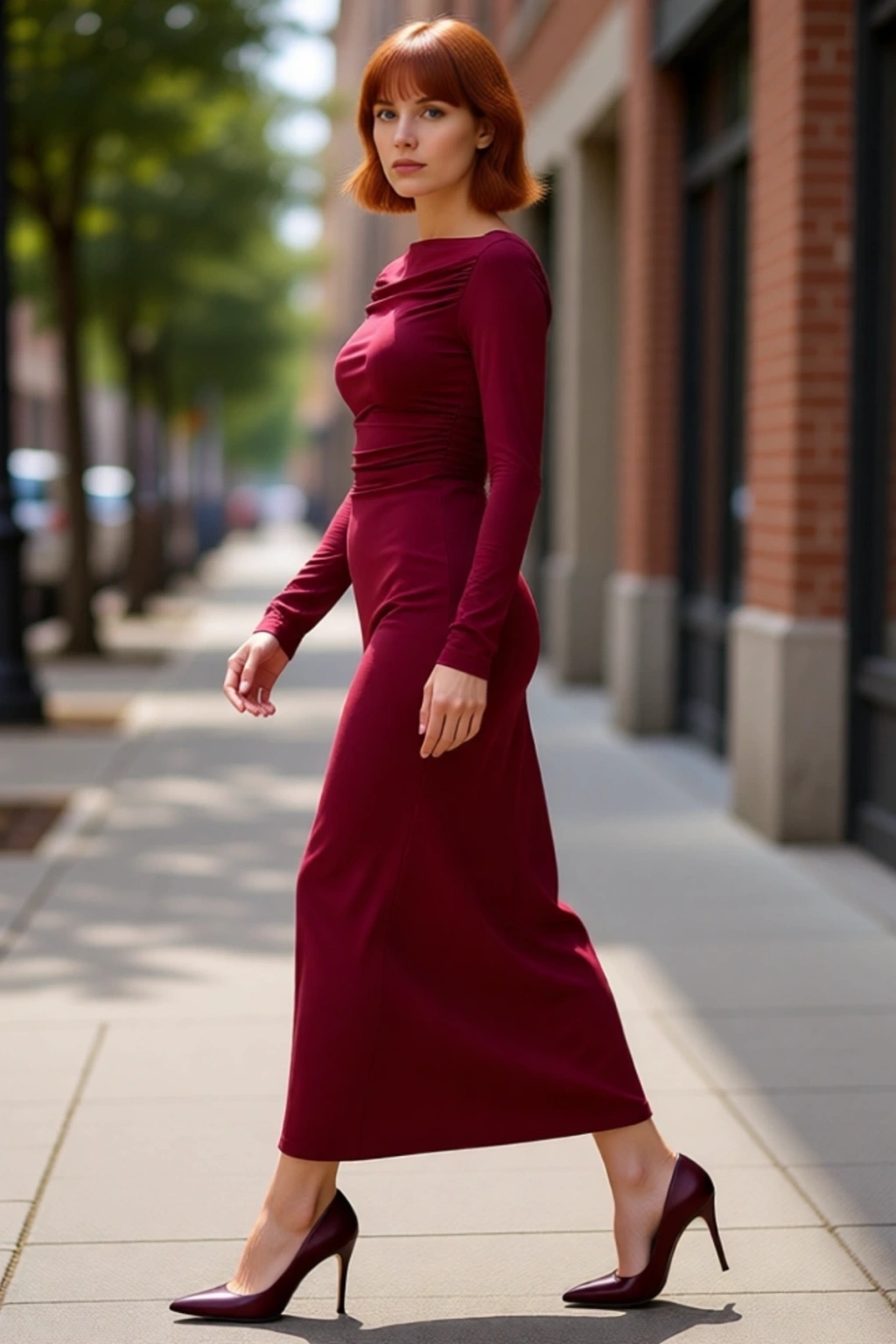 Bu Kadın Kayık Yaka Bodycon Uzun Kollu Midi Elbise, vücuda oturan bodycon kalıbı ile şık ve zarif bir siluet sunar. Yüksek kaliteli polyester ve elastan karışımından oluşan örme kumaşı sayesinde gün boyu üstün konfor ve esneklik sağlar. Büzgü detayları elbiseye dinamik bir hareket katarken, düz deseni sade ve sofistike bir görünüm sergiler. Bordo rengi ile her ten rengine uyum sağlayarak göz alıcı bir stil yaratır. Kalın sandy dokuma tipi, ürünün tok duruşunu desteklerken, astarsız yapısı hafif bir kullanım deneyimi sunar. Bu elbise, modern ve kendine güvenen kadınların gardırobunun vazgeçilmez parçası olmaya aday.