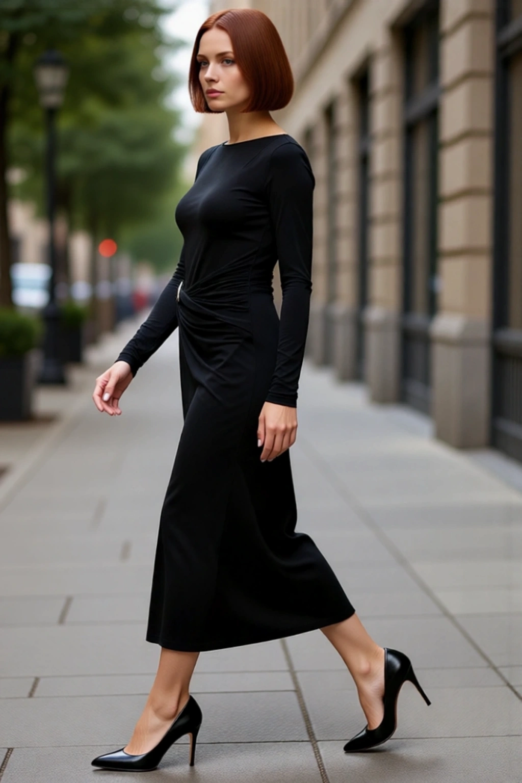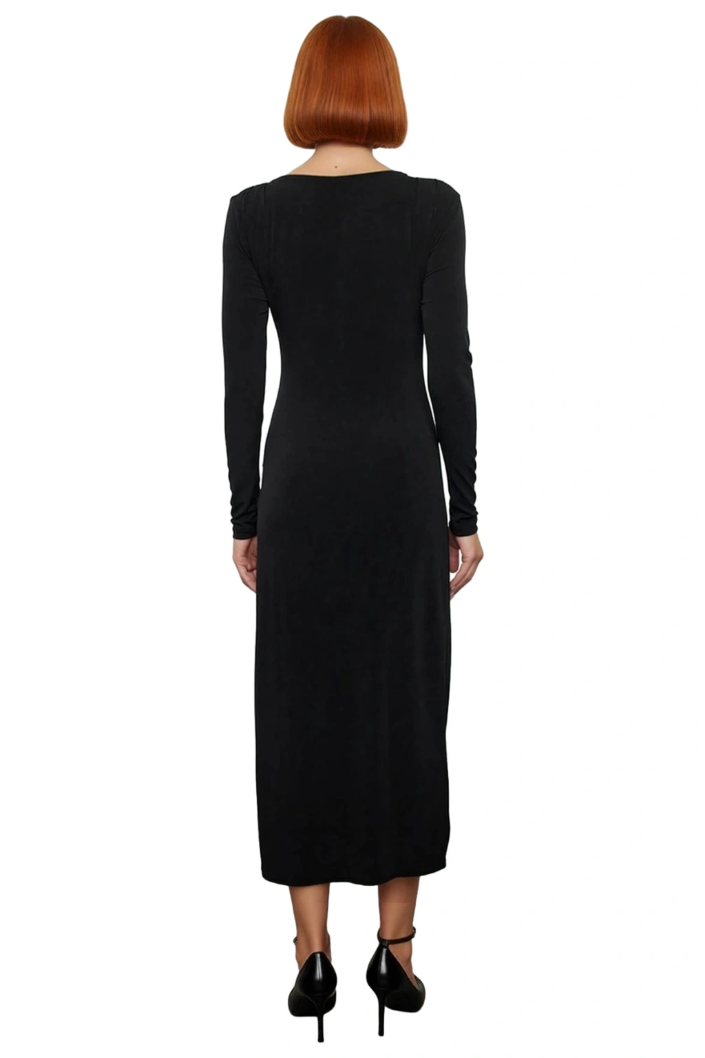 Maxi boyu ve bodycone silueti, farklı vücut tiplerine kolayca uyum sağlayarak her kadının kendini özel hissetmesini sağlar. Kış sezonu için mükemmel bir seçim olan bu elbise, çizme veya stiletto ile kombinlenerek şıklığınızı katlayabilir. Gündüz şık bir iş görünümü için uygunken, akşam yemekleri veya özel davetlerde de göz kamaştırıcı bir stil sunar. Hem konforlu hem de stil sahibi olmak isteyen kadınlar için idealdir.