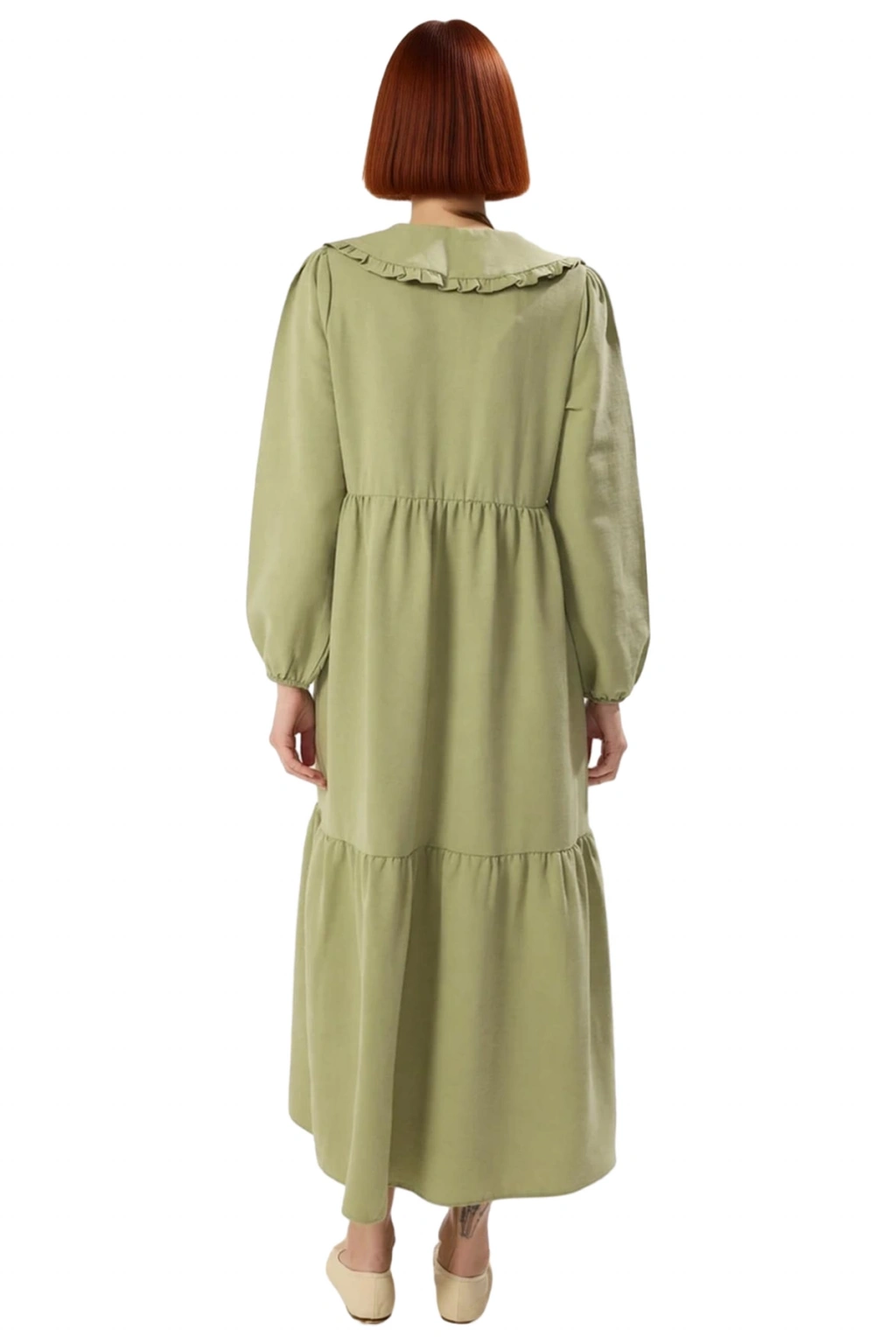 Balon kol tipi, elbiseye modern ve hacimli bir görünüm kazandırırken, uzun kol boyu mevsim geçişlerinde sizi sıcak tutar. Astarsız olması, hafiflik ve nefes alabilirlik sunarak gün boyu rahatlık sağlar. Dokuma kumaşın kalitesi ve keten görünümlü dokusu, elbiseye zarif bir düşüş ve dayanıklılık katar. Materyal bileşeni olan %67 Polyester, %26 Pamuk ve %7 Viskoz, kumaşın hem yumuşaklığını hem de formunu korumasını garantiler. Kemersiz tasarımı ile akıcı ve doğal bir siluet oluşturur. Bakımı kolay yapısıyla pratik bir kullanım sunar.