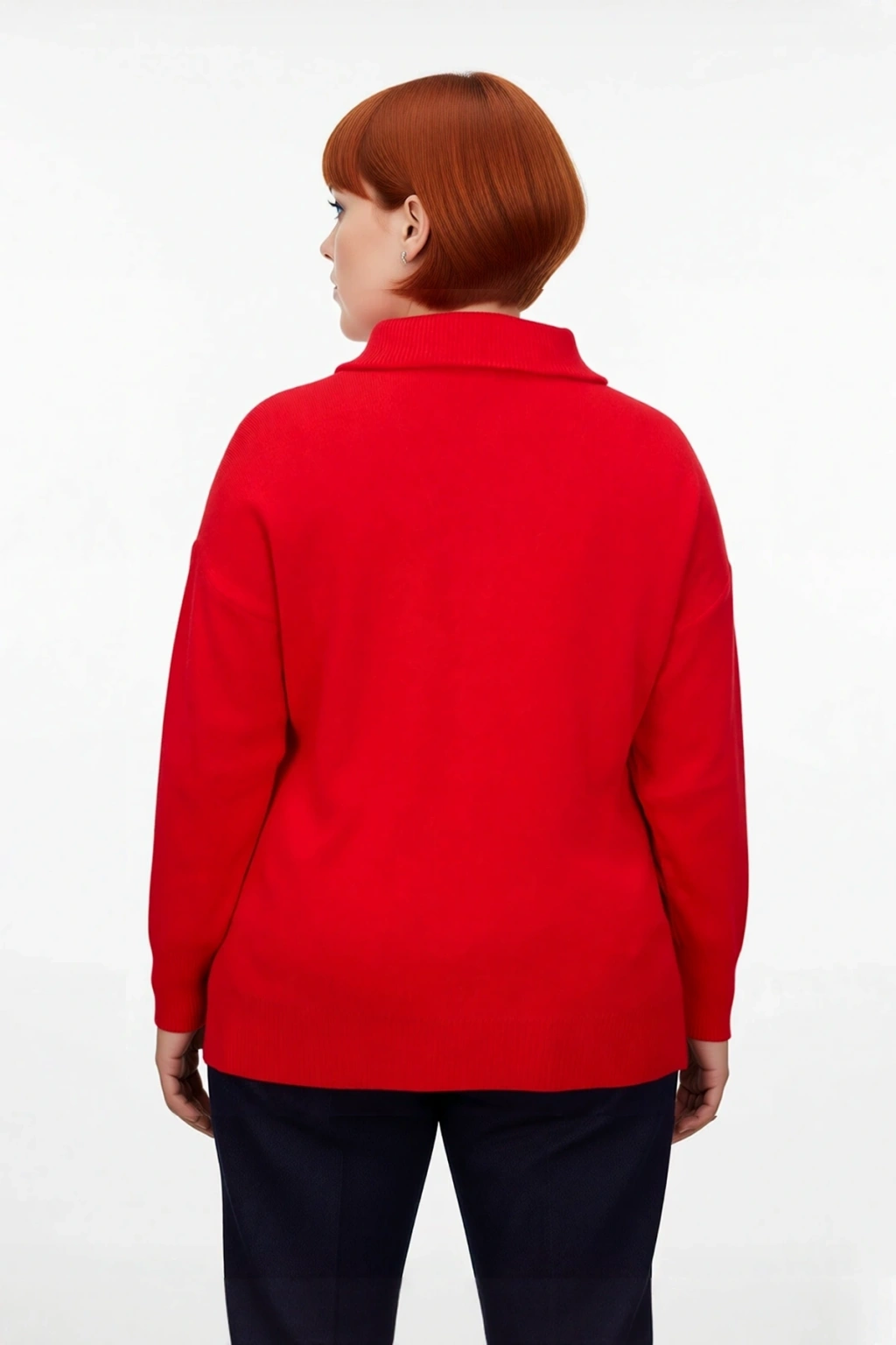 Ürün Özellikleri: Regular kalıp, %100 akrilik materyal, düz desen, devrik yaka, düşük kol, triko kumaş, kırmızı renk.
