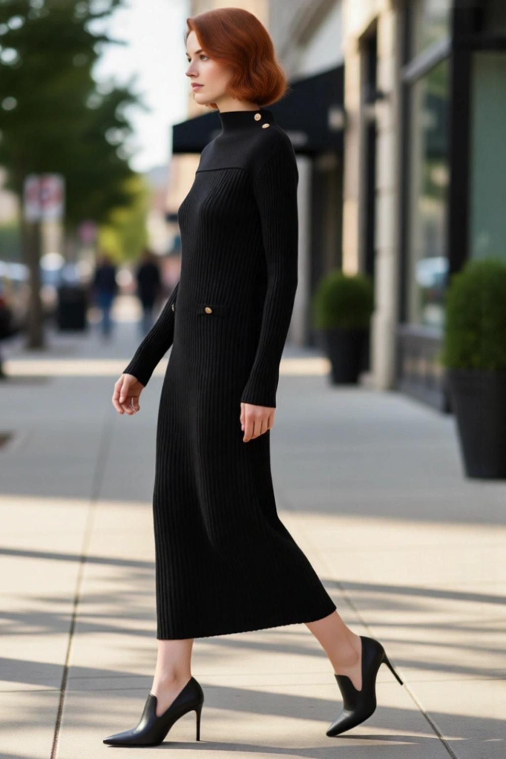 Bu A-line kesim elbise, geniş bir beden aralığına ve farklı vücut tiplerine hitap eder. Kış ve sonbahar aylarında, şık bir eşarp, zarif bir çanta ve topuklu botlarla kombinleyerek sofistike bir görünüm elde edebilirsiniz. Hem iş hayatında hem de sosyal etkinliklerde giyebileceğiniz bu elbise, zamansız şıklığı ve pratik kullanımıyla öne çıkar.
