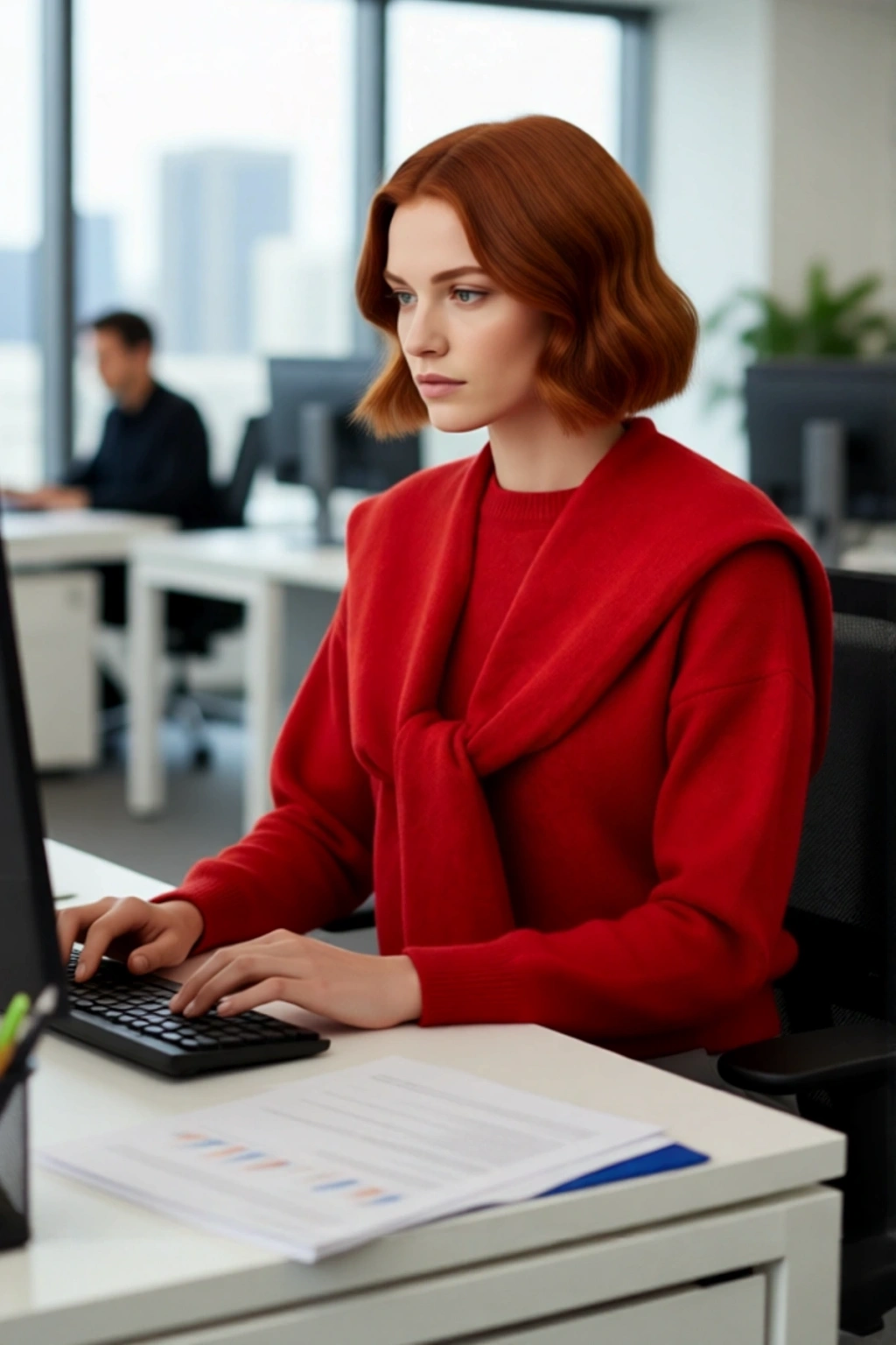 Ürün Özellikleri: Oversize kalıp, %77 akrilik %23 polyester materyal, düz desen, bisiklet yaka, düşük kol, triko kumaş, kırmızı renk, kalınlık, regular boy, tek plaka dokuma.