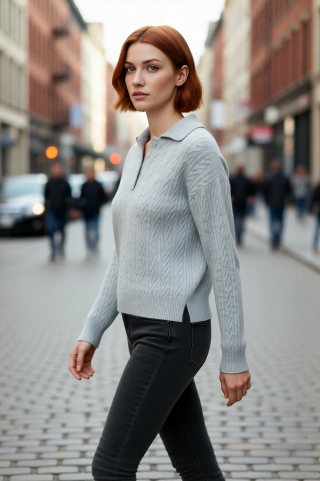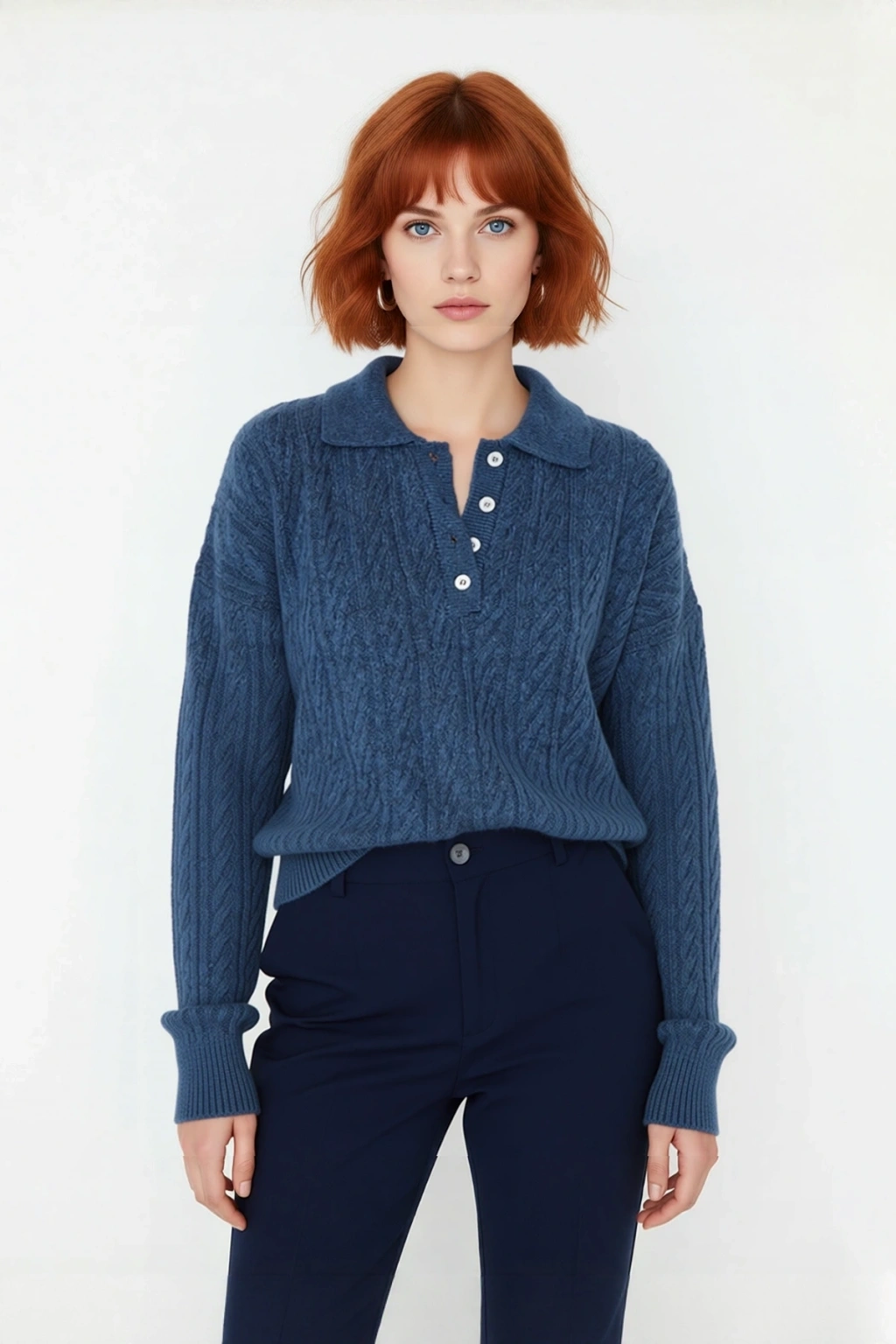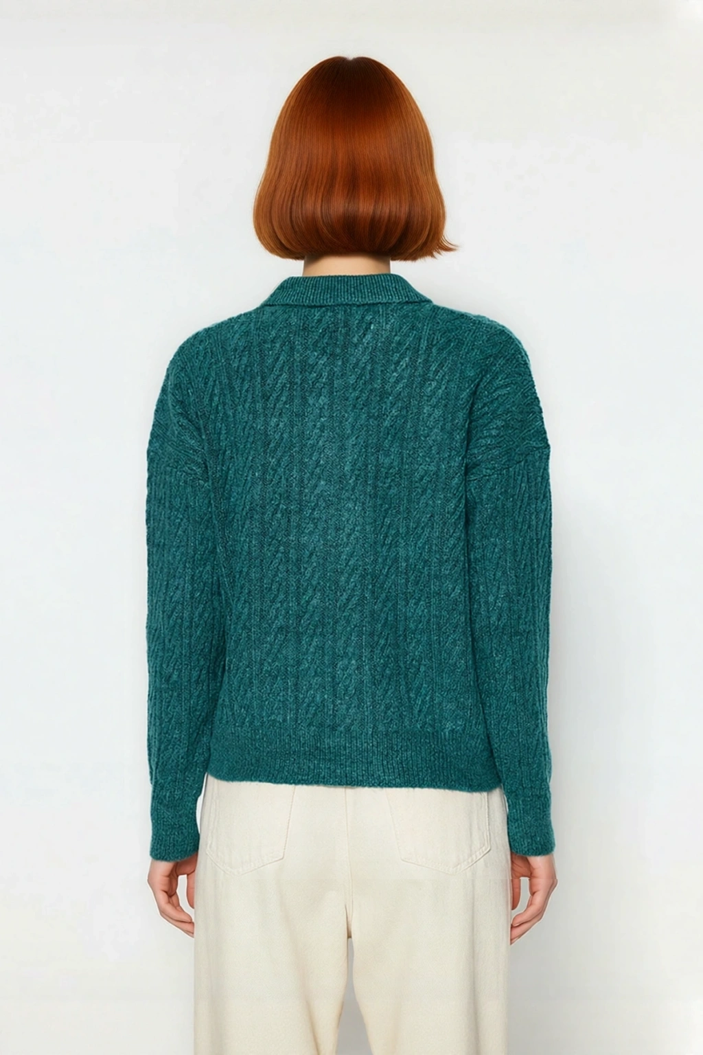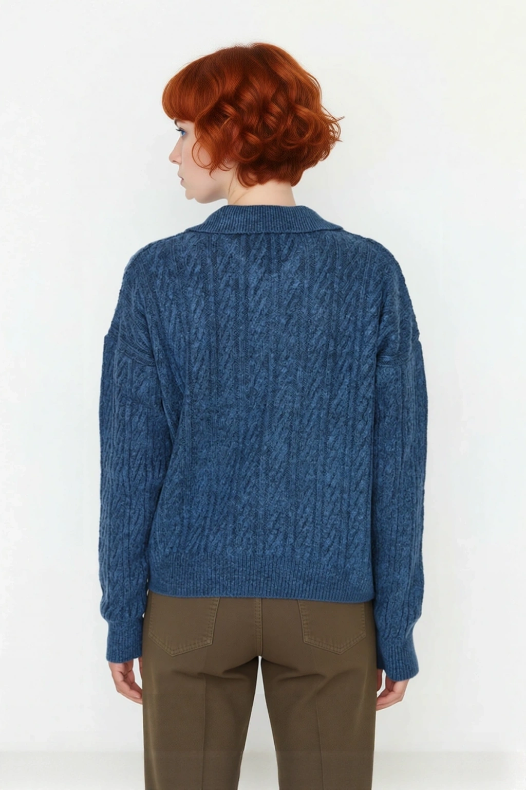 Ürün Özellikleri: Oversize kalıp, 74% akrilik 26% polyester materyal, saç örgü desen, polo yaka, düşük uzun kol, triko kumaş, gri renk, basic siluet.