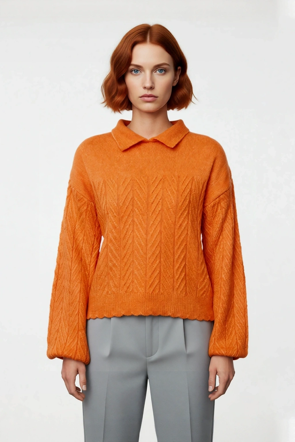 Ürün Özellikleri: Regular kalıp, akrilik materyal, saç örgü desen, polo yaka, düşük kol, triko kumaş, gri renk, cepsiz, uzun kol boyu, basic siluet, regular boy, tek plaka dokuma, 1 parça.
