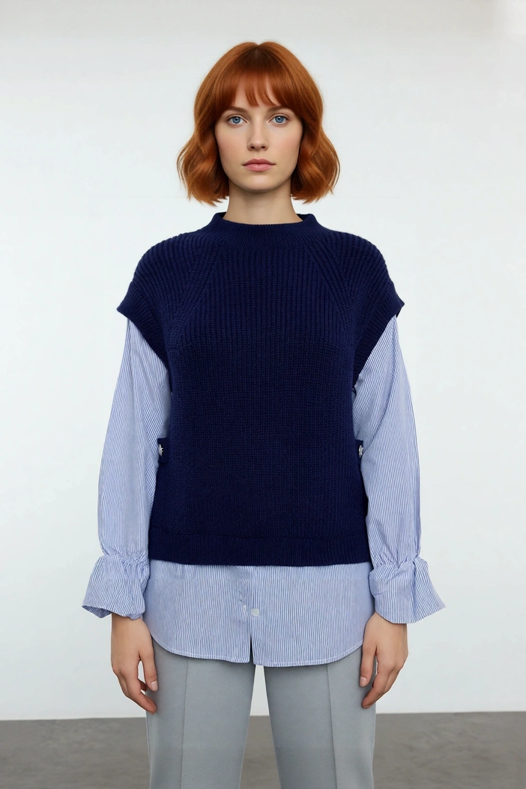 Bu lacivert süveter, iş hayatından sosyal etkinliklere kadar geniş bir yelpazede kullanılabilir. Gardırobunuzdaki kot pantolonlar, klasik kumaş pantolonlar veya şık eteklerle kolayca uyum sağlayarak farklı tarzlar yaratmanıza olanak tanır. Özellikle kış ve soğuk ilkbahar/sonbahar günlerinde katmanlı giyimin vazgeçilmez bir parçası olarak sıcak ve stil sahibi olmanızı garantiler. "Cool & Comfort" persona tanımına bütünüyle uyan bu ürün, şıklığı ve rahatlığı bir araya getirir.