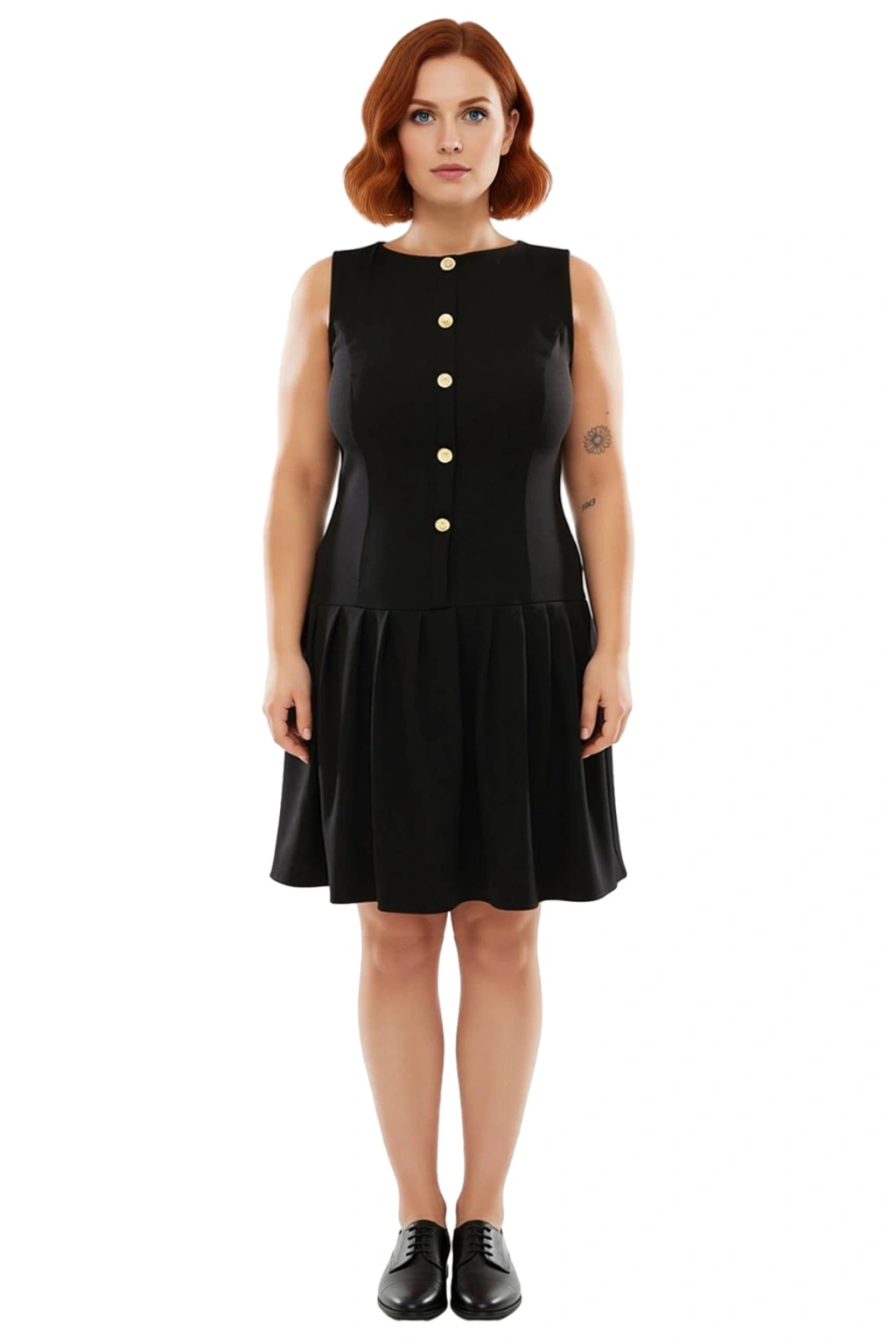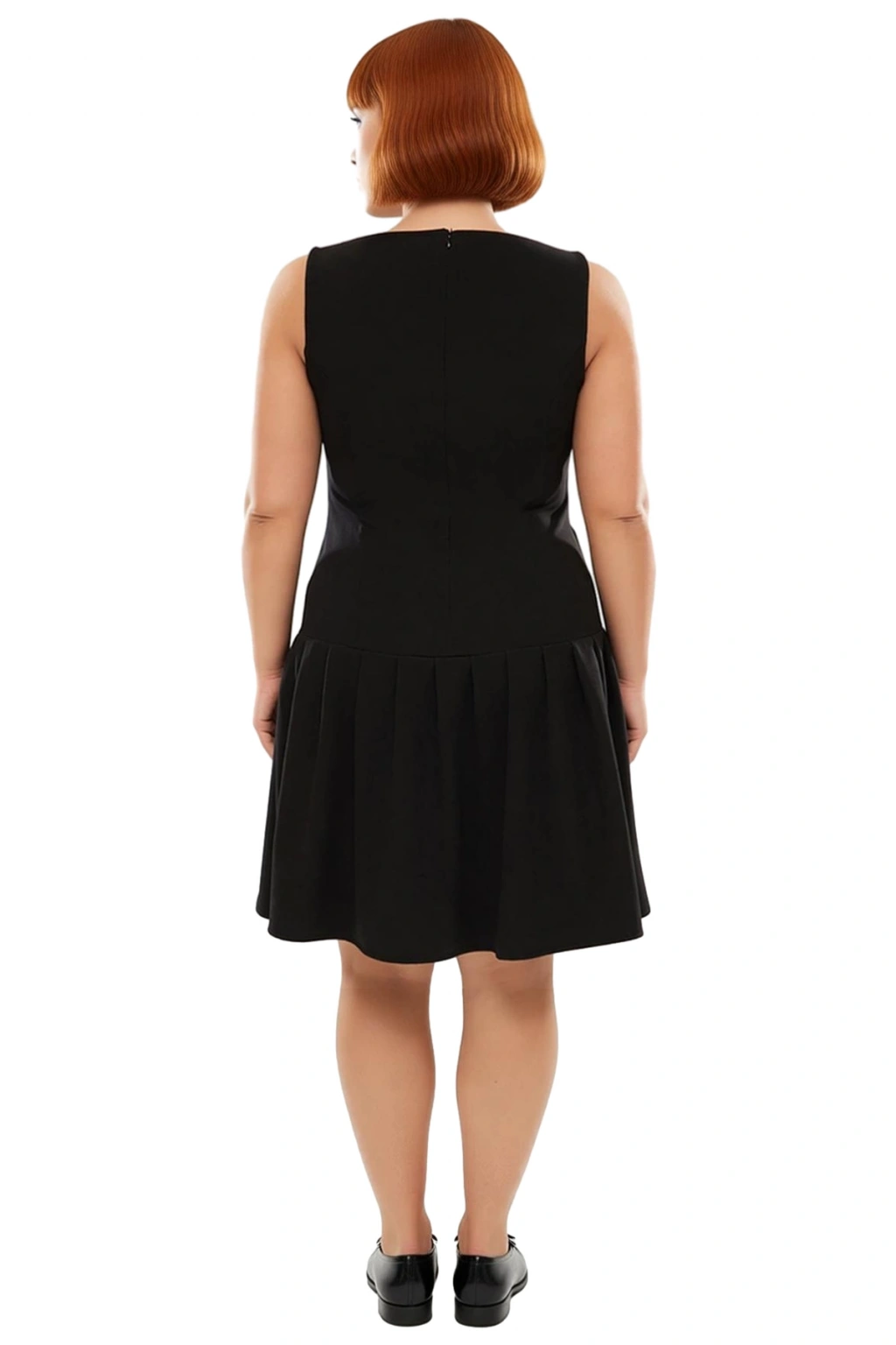 Ürün Özellikleri: A-line kalıp, polyester-elastan materyal, düz desen, kayık yaka, kolsuz, dokuma kumaş, siyah renk.