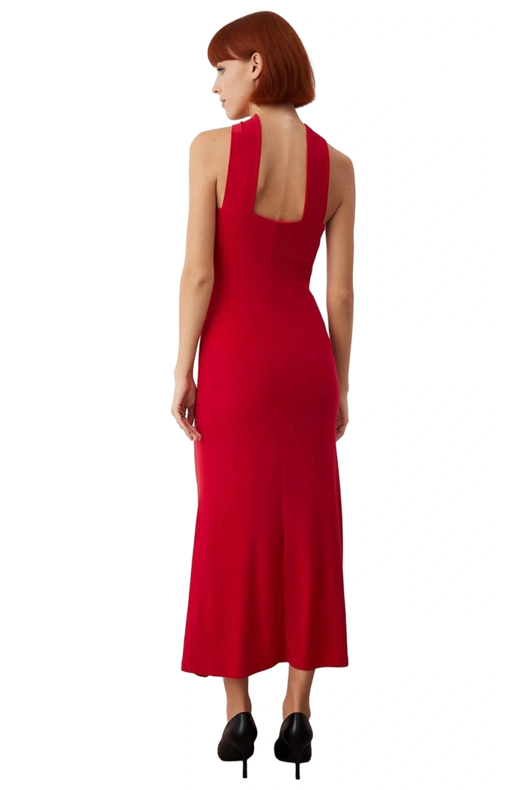 Maxi boyu ile modern ve sofistike bir duruş sergileyen bu elbise, farklı vücut tiplerine uyum sağlayan esnek yapısıyla her kadının gardırobunda olması gereken bir parçadır. Şık topuklular ve zarif takılarla tamamlayarak özel günlerinize damga vurabilirsiniz. İlkbahar ve yaz akşamları için ideal olmakla birlikte, iç mekan kokteyl veya davetlerde dört mevsim şık bir alternatif olarak tercih edilebilir. Bu elbise ile zarafetin ve konforun tadını çıkarın.