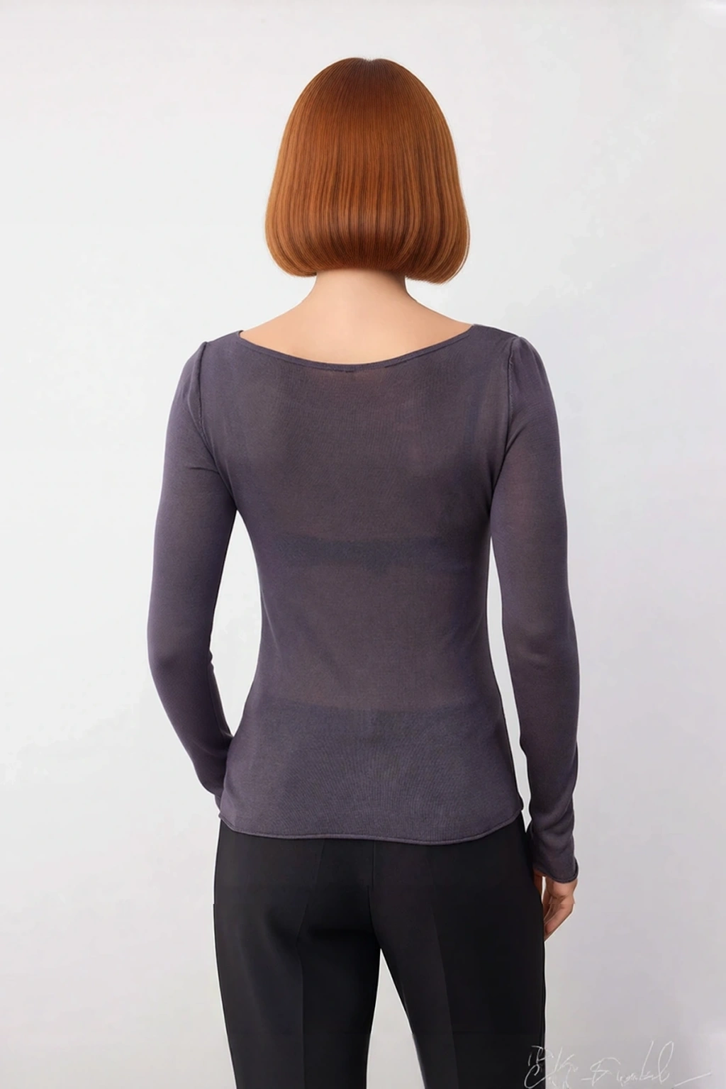 Ürün Özellikleri: Regular kalıp, viskoz materyal, düz desen, bisiklet yaka, standart kol, triko kumaş, gri renk.