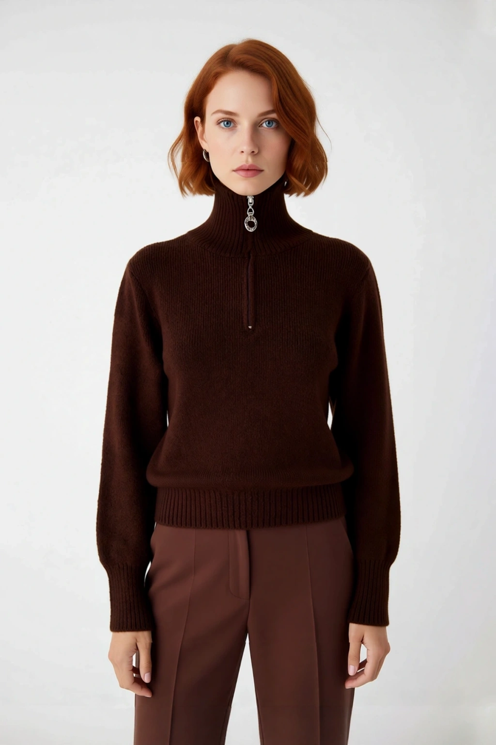 Öne çıkan fermuarlı dik yaka tasarımı, kazağa modern bir hava katarken, soğuk rüzgarlara karşı ekstra koruma sağlar. Standart kol tipi ve uzun kol boyu, gün boyu konforlu kullanım imkanı sunar. Selanik dokuma tipi, kazağın yüzeyine hoş bir doku katarken, triko kumaşın esnekliği hareket özgürlüğünü destekler. Yüksek kaliteli iplik yapısı sayesinde dayanıklıdır ve yıkama talimatlarına uyulduğunda uzun süre ilk günkü formunu korur. Bu ürün casual/günlük kullanımlar için idealdir.