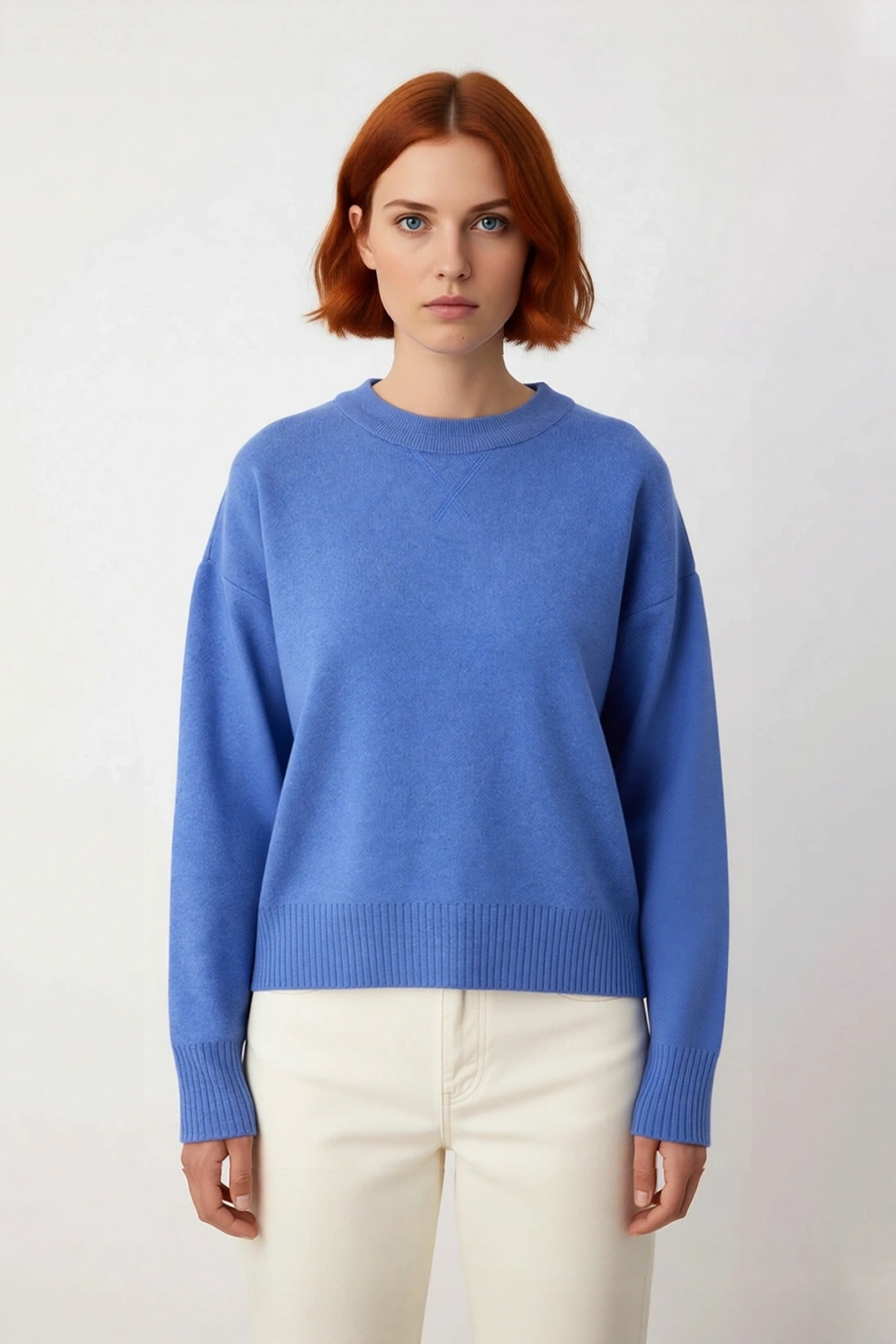 Bisiklet yaka tasarımı, boyun bölgesinde rahatlık sunarken, klasik bir görünümün anahtarıdır. Uzun ve düşük kol yapısı, modern detaylarla birleşerek kazak siluetine karakteristik bir hava katar. Orta kalınlıktaki triko kumaşı ve tek plaka dokuma tekniği, ürünün hem sıcak tutmasını hem de formunu korumasını sağlar. Bu kazak, kalitesiyle öne çıkarak gardırobunuzda uzun yıllar yerini koruyacak. Makinede yıkanabilir özelliği, pratik bir kullanım sunarak bakımını kolaylaştırır. Dayanıklı yapısıyla sık kullanıma uygun bir üründür.