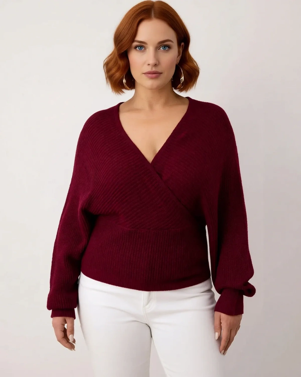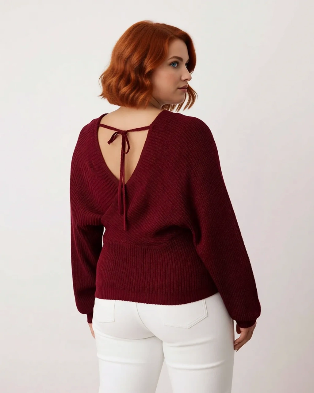 Ürün Özellikleri: Regular kalıp, %100 akrilik materyal, düz desen, V yaka, yarasa kol, triko kumaş, bordo renk, bağcıklı ek özellik.