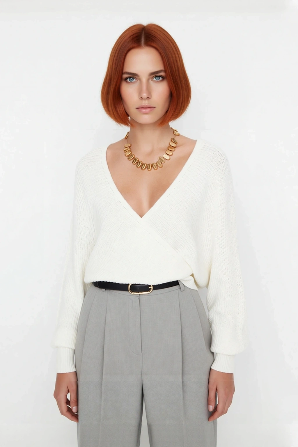 Yarasa kol tipi ve uzun kol boyu, kazağa özgün ve rahat bir hava katarken stil sahibi bir görünüm yaratır. Orta kalınlıktaki triko kumaş dokusu, tek plaka dokumasıyla hem estetik hem de fonksiyonel bir kalite hissi verir ve soğuk havalarda ideal bir koruma sağlar. Süper crop boyu, yüksek bel pantolonlar veya eteklerle mükemmel bir uyum yakalayarak bacak boyunuzu uzun gösterir ve modern bir siluet oluşturur. Makinede yıkanabilir özelliği sayesinde bakımı son derece pratiktir, ütü gerektirmeyen yapısıyla zamandan tasarruf ettirir. Akrilik materyalin dayanıklılığı, bu kazağın uzun yıllar boyunca formunu ve rengini korumasını garanti eder.