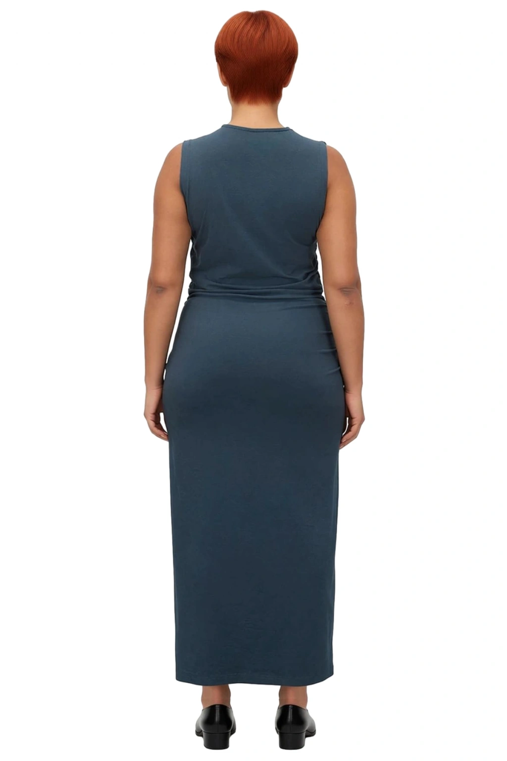 Bu Kadın Kruvaze Yaka Yanları Büzgülü Kolsuz Maxi Elbise, modern ve çağdaş bir tarz sunarak gündelik şıklığınızı tamamlar. Esnek shift kalıbı, vücuda nazikçe otururken büyük beden konforunu en üst düzeye çıkarır ve gün boyu rahat bir deneyim sağlar. Kaliteli örme kumaşı, %95 pamuk ve %5 elastan içeriğiyle cildinize dost, nefes alabilen ve hareket kabiliyetinizi kısıtlamayan bir yapıya sahiptir. Düz deseni minimalist bir estetik sunarken, petrol yeşili tonu her kombine kolayca uyum sağlar. Yanlardaki büzgülü detaylar elbiseye hareket katarken, feminen bir dokunuş ekler.