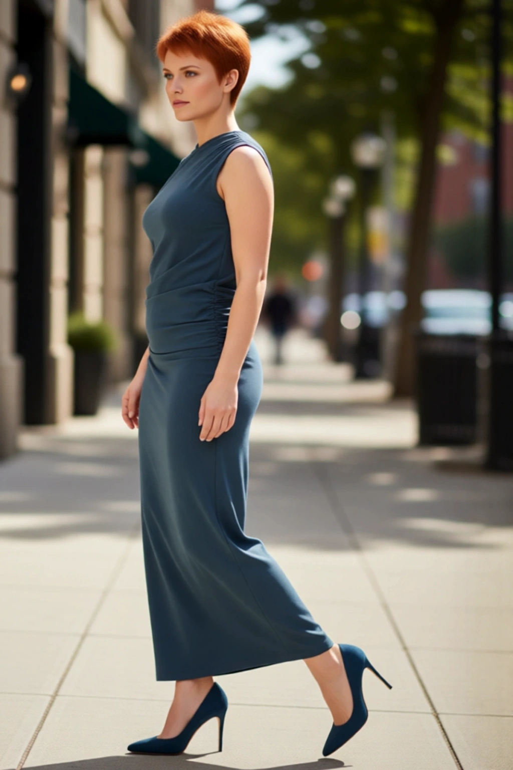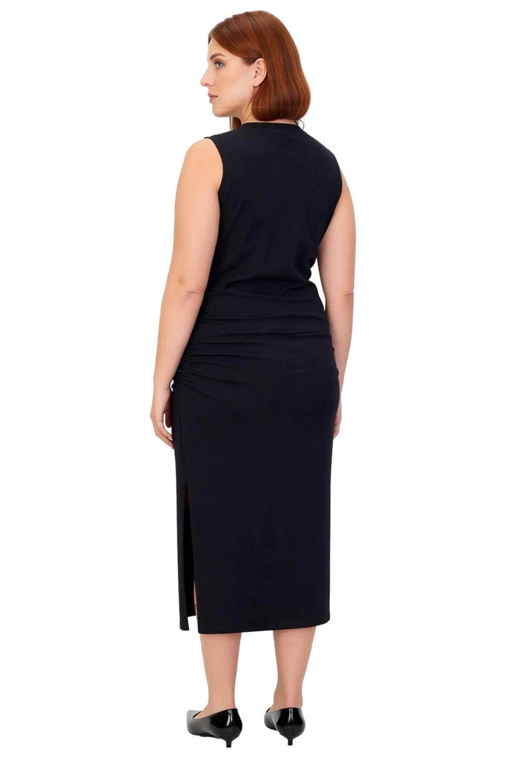 Bu Kadın Kruvaze Yaka Yanları Büzgülü Kolsuz Maxi Boy Elbise, modern ve zarif bir stil sunarak gardırobunuzun vazgeçilmezi olmaya aday. Rahat shift kalıbı sayesinde her vücut tipine uyum sağlarken, büyük beden seçeneğiyle konforu ön planda tutar ve hareket özgürlüğü sunar. Yüksek kaliteli örme kumaşı, %95 pamuk ve %5 elastan bileşeni ile gün boyu nefes alabilirlik ve üstün esneklik sunar. Düz deseni sade şıklığı yansıtırken, doğal petrol yeşili rengiyle sofistike bir zarafet katar. Yanları büzgülü detayları ise elbiseye dinamik ve çekici bir dokunuş ekleyerek modern bir siluet oluşturur.