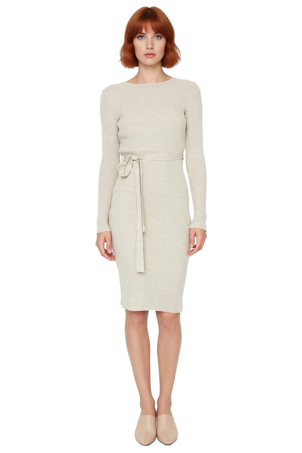 Bu şık kadın triko midi elbise, bodycon kalıbı ile vücuda mükemmel bir uyum sağlayarak zarif bir siluet oluşturur. Yüksek kaliteli akrilik materyali sayesinde hem yumuşak bir dokunuş hissi verir hem de geçiş mevsimlerinde ideal bir sıcaklık sunar. Düz deseni ve kuşaklı kapama şekli modern bir zarafet katarken, midi boyu ile hem günlük hem de özel anlar için vazgeçilmez bir parçadır. Uzun standart kolları hareket özgürlüğü sağlarken, astarsız yapısı hafif ve rahat bir kullanım sunar.