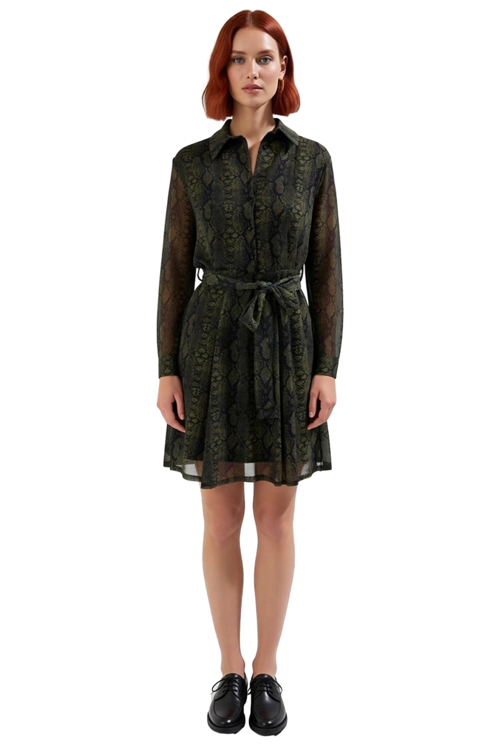 Elbisenin uzun standart kolları, hafif transparan yapısıyla zarif bir duruş sergiler. Şifon dokuma kumaşı, hassas ve dökümlü yapısıyla her harekette size eşlik eder. Yarım pat düğme kapama şekli pratik bir kullanım sunarken, eteği belden açılan skater silueti genç ve dinamik bir hava katar. Bu elbise, sadece şık değil, aynı zamanda bakımı kolay bir üründür; T10 yıkama talimatına uygun olarak makinede yıkanabilir. Kaliteli dikişleri ve dayanıklı materyali sayesinde uzun yıllar ilk günkü formunu korur.