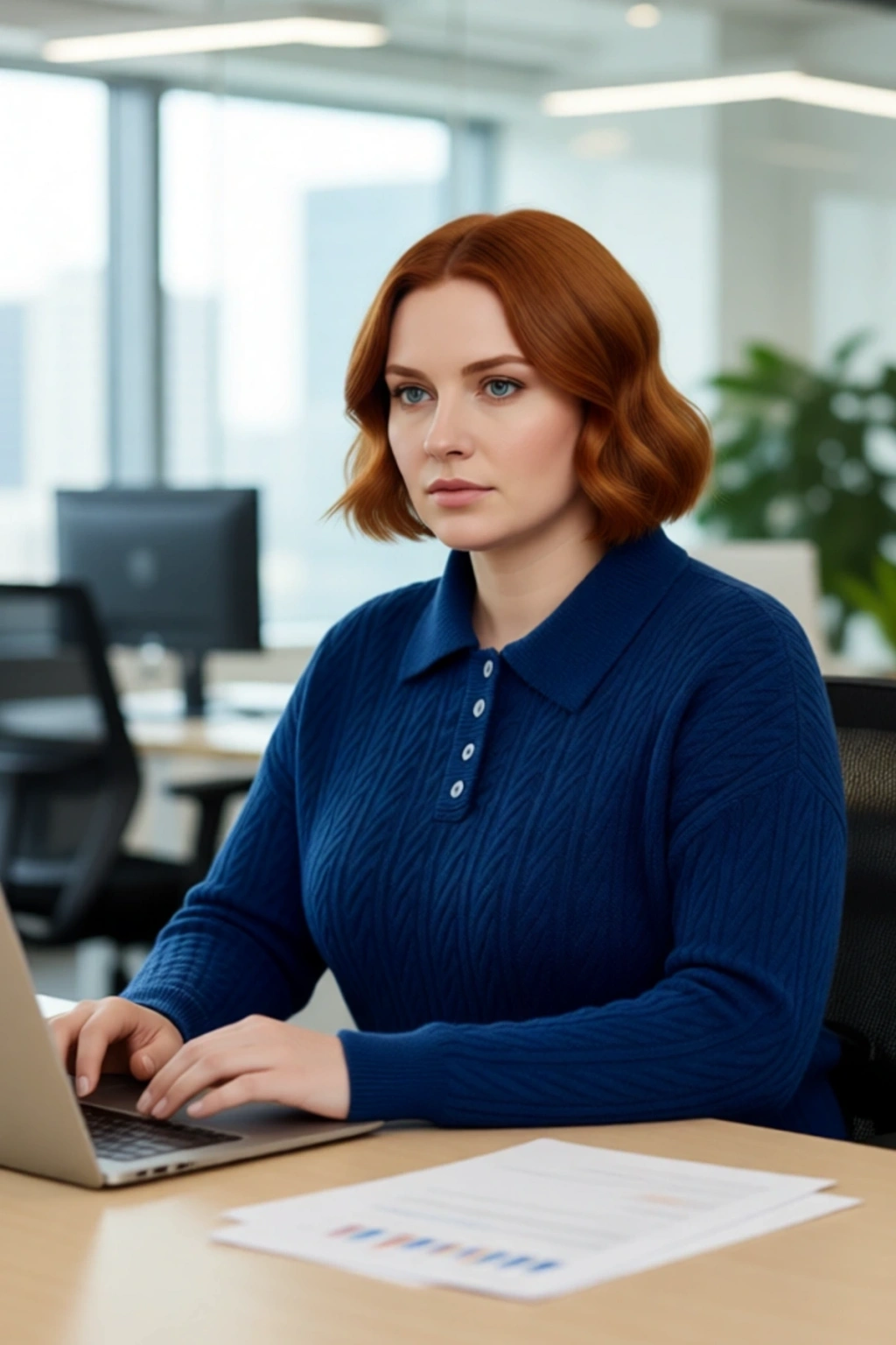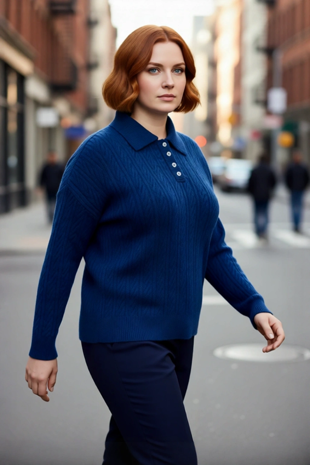 Ürün Özellikleri: Regular kalıp, akrilik materyal, saç örgü desen, polo yaka, düşük kol, triko kumaş, mavi renk.