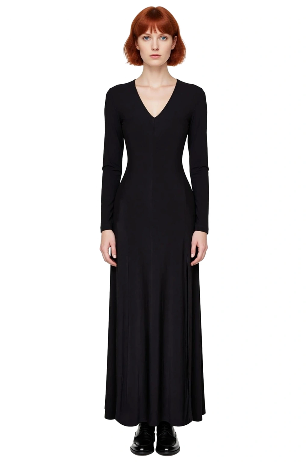 Elbisenin zarif V yaka tasarımı dekolteyi estetik bir şekilde vurgularken, uzun standart kol yapısı kış aylarında sıcaklık ve şıklığı bir arada sunar. Kalın sandy dokuma örme kumaş tipi, hem yumuşak bir dokunuş hem de vücuda tam oturan esnek bir yapı sağlar. Astarsız olmasına rağmen, kaliteli kumaşı sayesinde iç göstermez ve rahat bir kullanım sunar. Yırtmaç detayı, her adımda zarafetinizi sergileyerek hareket özgürlüğü kazandırır. T10 yıkama talimatına uygun olarak kolayca temizlenebilir, pratik bakımı ile gardırobunuzun vazgeçilmezi olmaya adaydır.