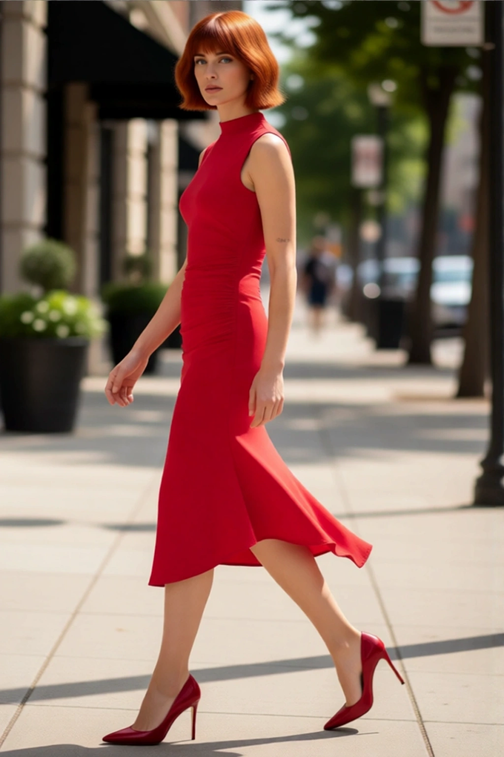 Skater silueti sayesinde farklı vücut tiplerine mükemmel uyum sağlayan bu elbise, belinizi vurgularken alt kısmı hareketli bir görünüm sunar. Özel davetlerde, düğünlerde veya mezuniyet törenlerinde topuklu ayakkabılar ve minimalist aksesuarlarla kombinleyerek göz kamaştırabilirsiniz. Şık ve gece ortamları için ideal olan bu elbise, "Ramadan" koleksiyonunun zamansız parçalarından biridir. Midi boyu ve çok yönlü tasarımı ile yılın tüm sezonlarında kapalı alan etkinlikleriniz için mükemmel bir tercihtir.