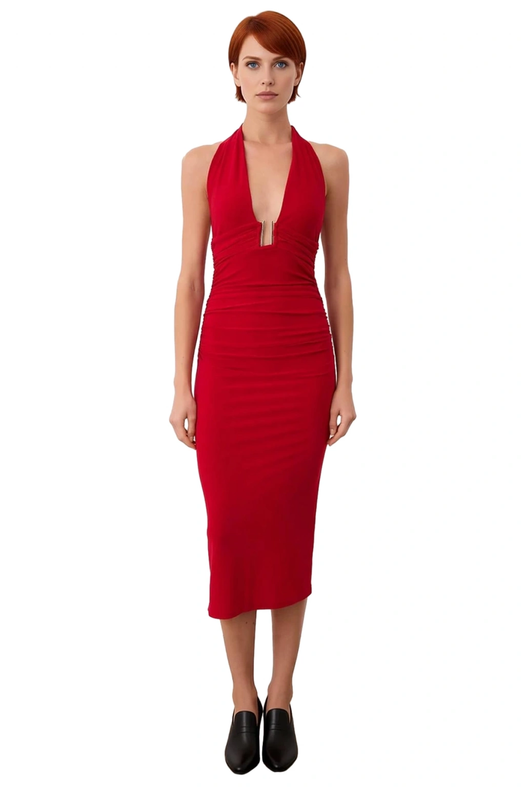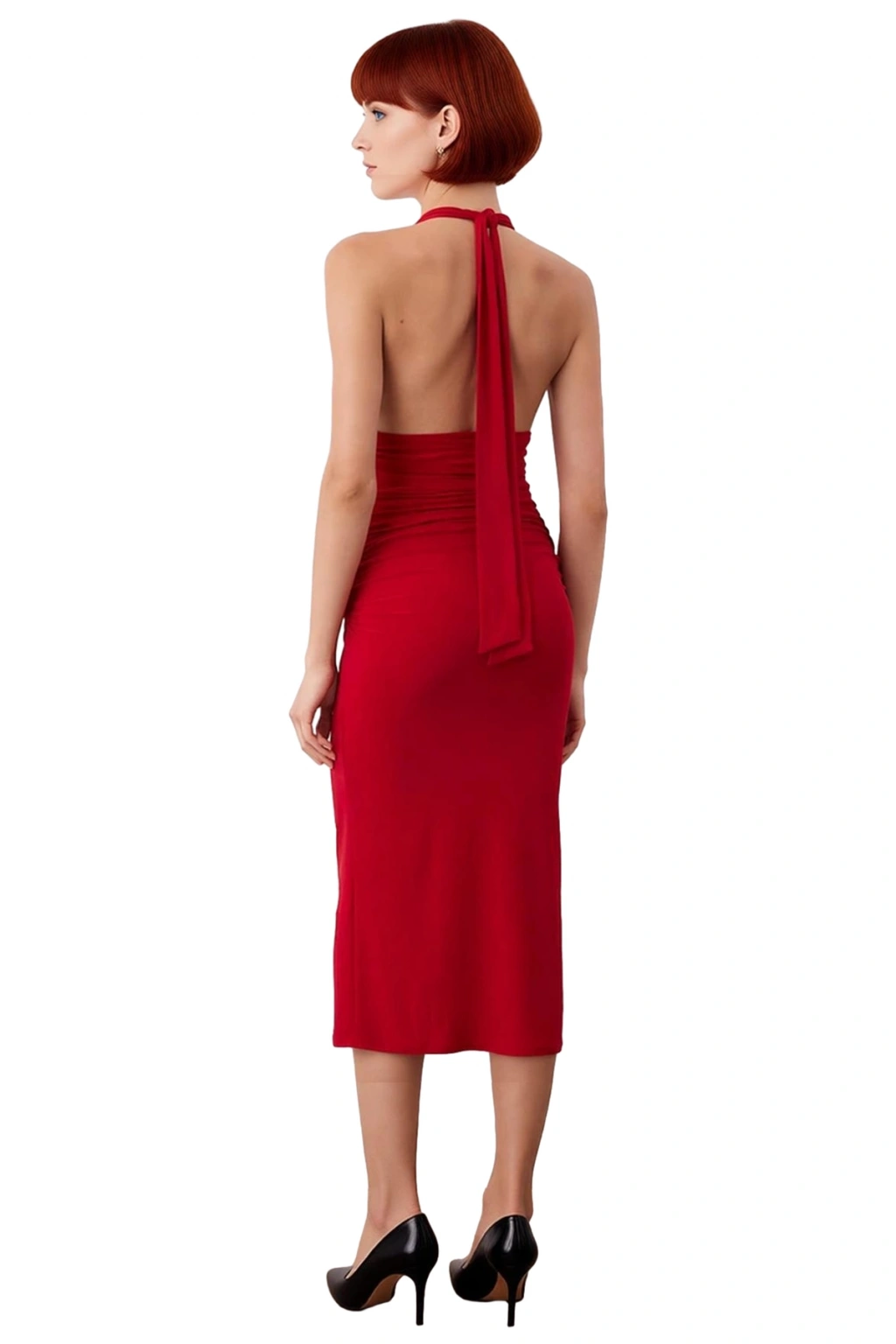 Midi boyu ile her tarz ayakkabıya uyum sağlayan bu bodycon elbise, vücut hatlarını öne çıkarmayı seven kadınlar için tasarlanmıştır. Kokteyl partileri, düğünler veya özel akşam yemekleri gibi davetlerde gözleri üzerinize çekmek için birebirdir. İlkbahar ve yaz aylarında tek başına, serin sonbahar akşamlarında ise hafif bir şal ile tamamlanarak dört mevsim şıklığınızı sürdürebilirsiniz.