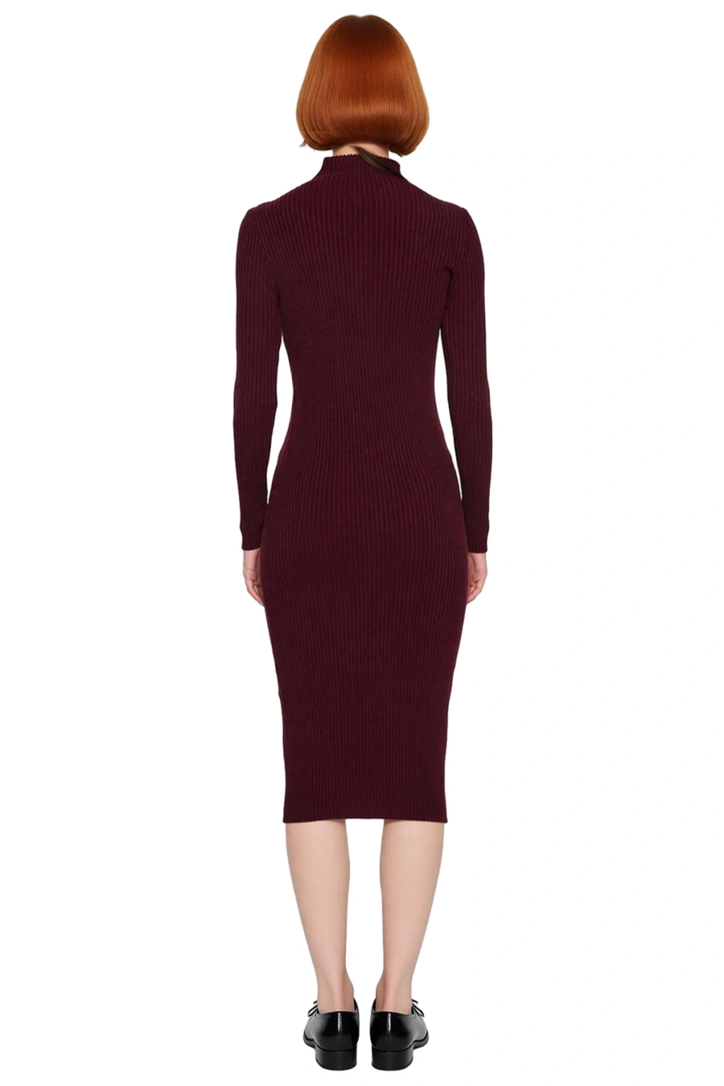 Tarz sahibi kadınların gözdesi olacak bu midi triko elbise, modern kesimi ve dikkat çekici detaylarıyla gardırobunuza sofistike bir hava katıyor. Vücudu kusursuzca saran bodycon kalıbı, feminen siluetinizi vurgularken, omuz bölgesindeki cut out pencere detayı cesur ve özgün bir stil sunar. Yüksek kaliteli %100 akrilik materyali, soğuk havalarda sizi sıcacık tutarken, aynı zamanda inanılmaz derecede yumuşak bir dokunuş sağlar. Düz ve mor rengi, minimalist bir şıklık arayanlar için idealdir.
