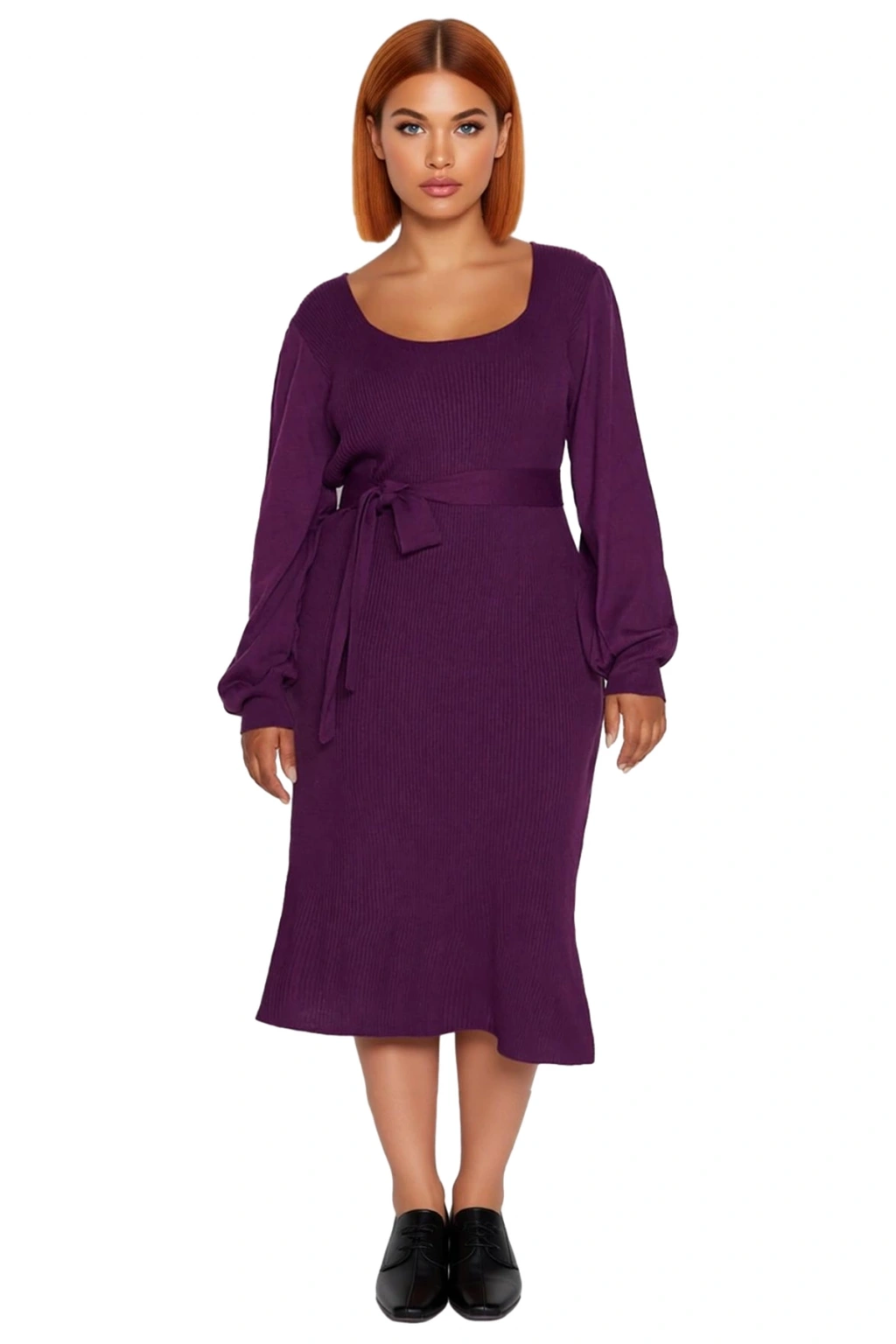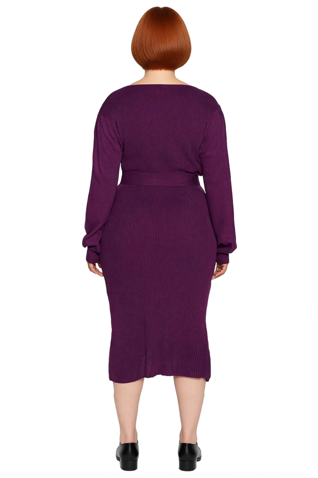 Ürün Özellikleri: Bodycon kalıp, akrilik materyal, düz desen, kare yaka, balon kol, triko kumaş, mor renk.