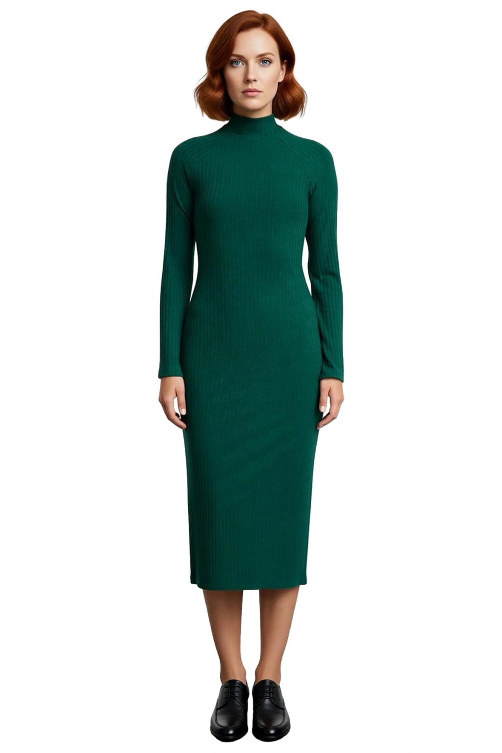 Midi boyu ve bodycon silueti, farklı vücut tiplerine zarif bir şekilde uyum sağlar ve bacak boyunu uzun gösterir. Şık topuklu botlar veya zarif çizmelerle kombinleyerek özel davetlerde, spor ayakkabılarla veya postal botlarla tamamlayarak günlük casual şıklığınızı yakalayabilirsiniz. Kış, sonbahar ve ilkbahar aylarında rahatlıkla tercih edebileceğiniz bu elbise, her anınızda size eşlik etmeye hazır.