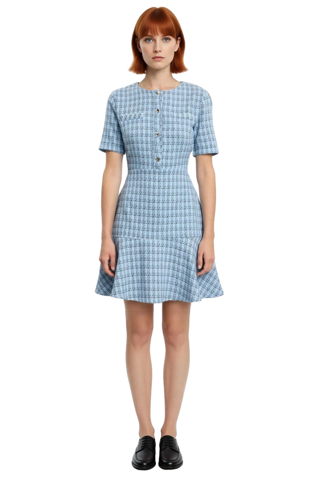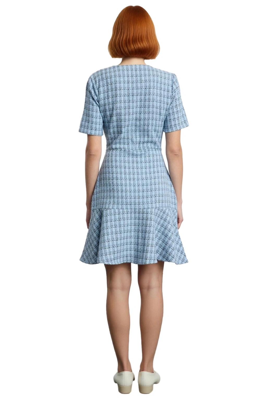 Kadınların iş ve sosyal yaşamlarında şıklığı ve rahatlığı bir arada arayanlar için tasarlanan bu mini elbise, skater kesimiyle modern bir tarz sunar. Tüvit dokuma kumaşı, elbiseye asil ve sofistike bir hava katarken, pamuklu materyali teninize nazik bir dokunuş sağlar. Düz deseniyle zamansız bir estetik sunan bu mavi elbise, astarsız yapısıyla hafiflik ve hareket özgürlüğü vadeder. Ofis ortamında profesyonel bir görünüm sergilemek isteyenler için ideal bir seçenektir.
