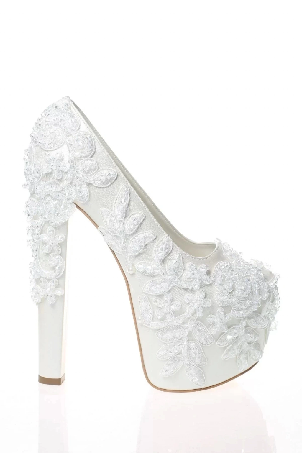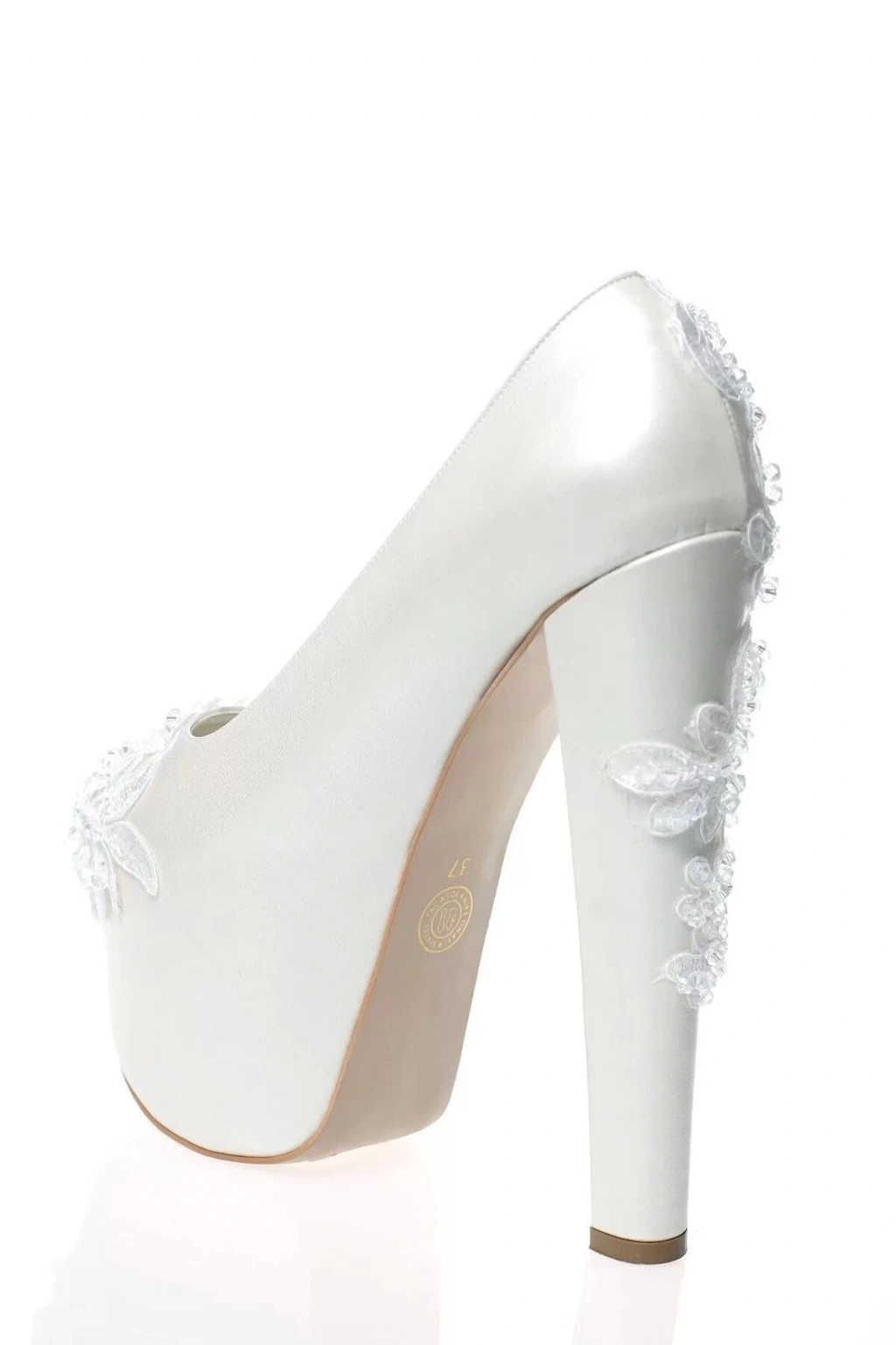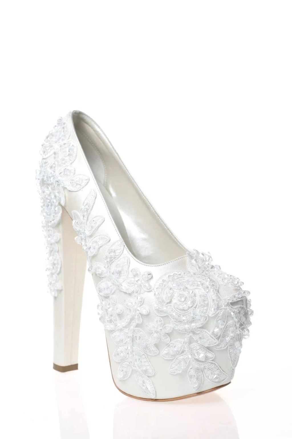Zarif tasarımıyla dikkat çeken bu gelin ayakkabısı, yüksek topuklu (10 cm ve üzeri) yapısıyla şıklığınızı tamamlar.