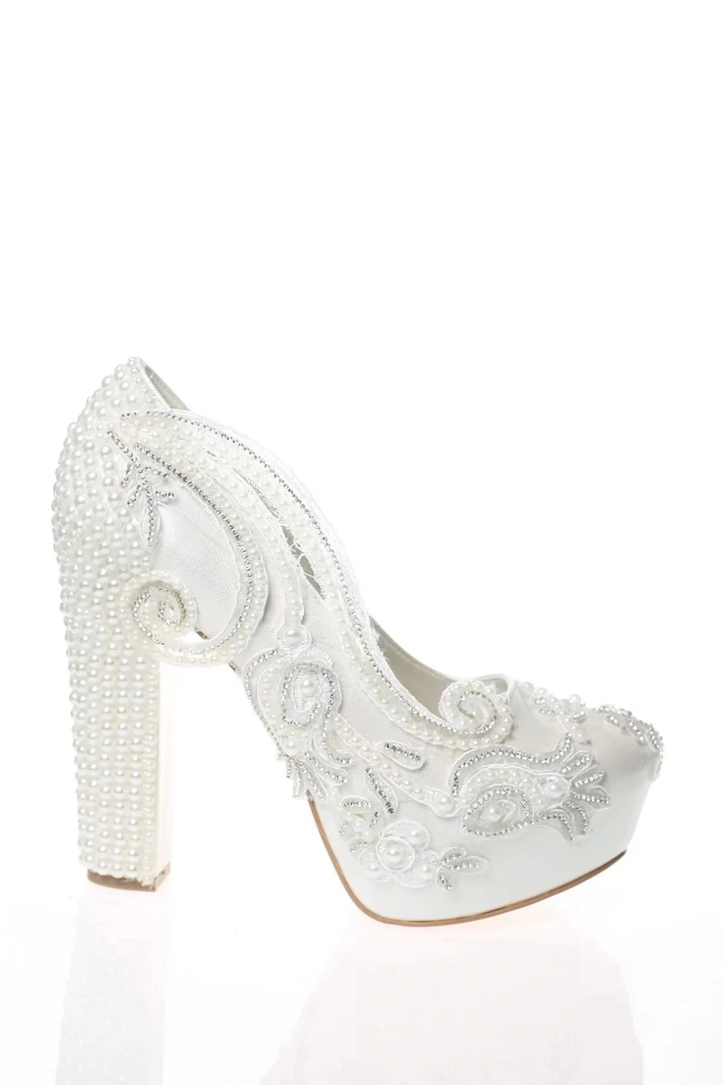 Özel günlerinizde tercih edebileceğiniz bu ayakkabı, sedef inci taş işlemesiyle göz kamaştırıcı bir detay sunar.