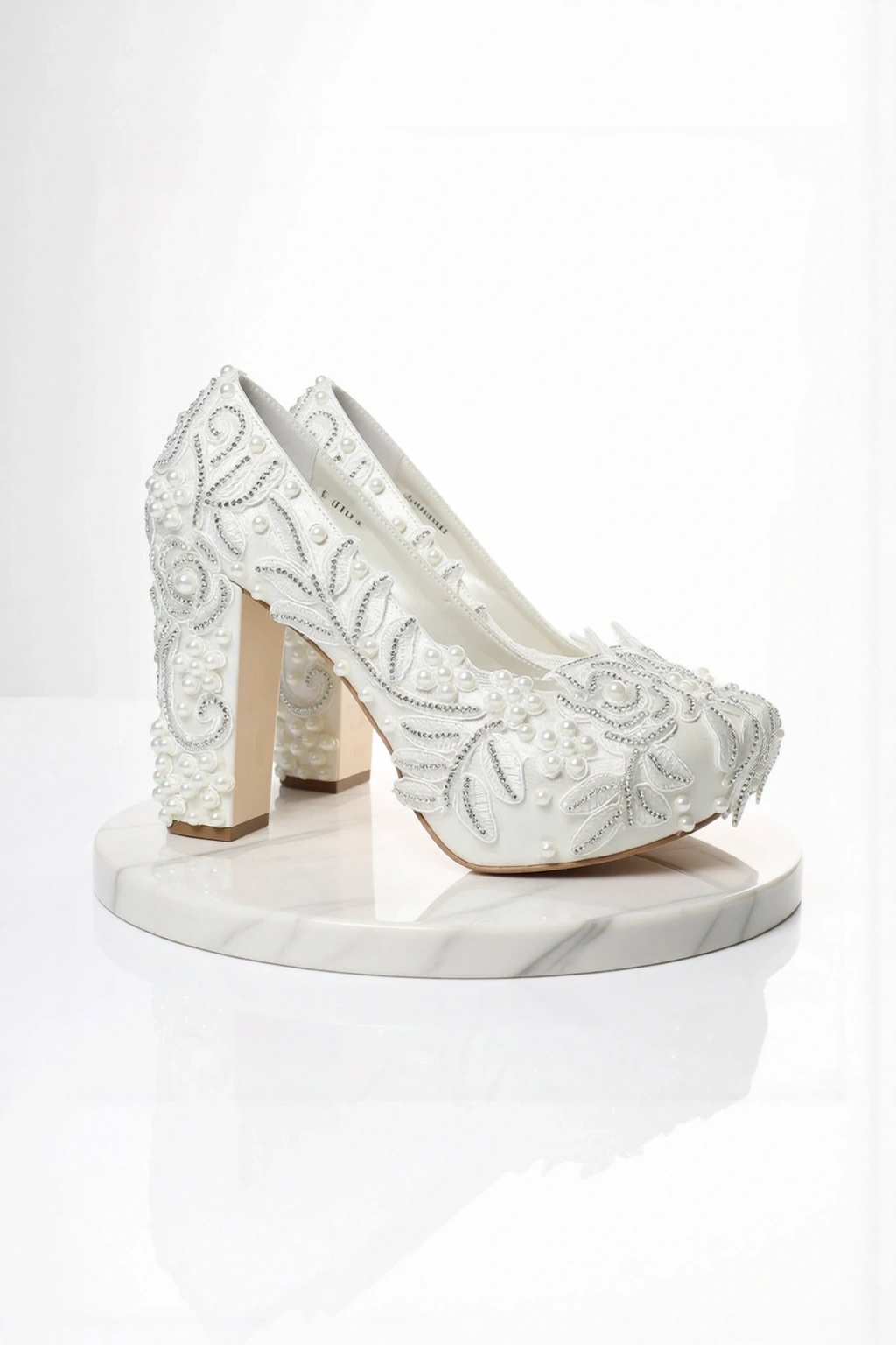 Kadın Beyaz Sedef Inci Taş Işlemeli Gelin Ayakkabı modeli, şıklığı ve konforu bir araya getirerek özel günler, davetler ve gece organizasyonları için ideal bir tercihtir. Modern tasarımı ve kaliteli yapısı sayesinde stilinize zarafet katar. Topuklu yapısıyla duruşunuzu güzelleştirirken, rahat kalıbı ile gün boyu konfor sunar.