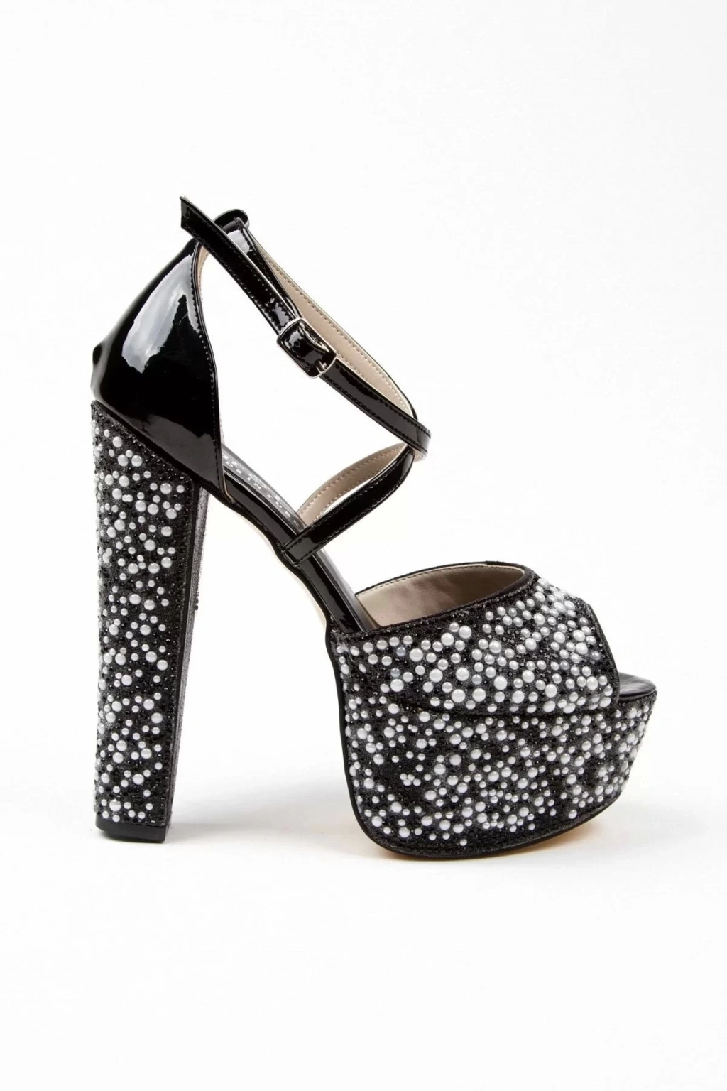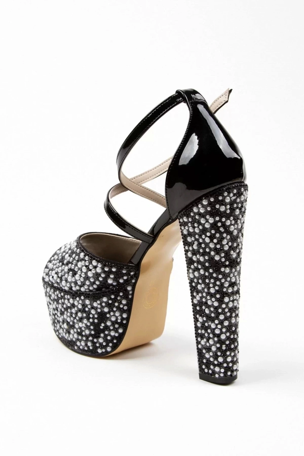 Zarif tasarımıyla dikkat çeken siyah rugan full inci topuklu kadın abiye ayakkabı, kalın topuklu yapısı sayesinde hem şıklığı hem de rahatlığı bir arada sunar.