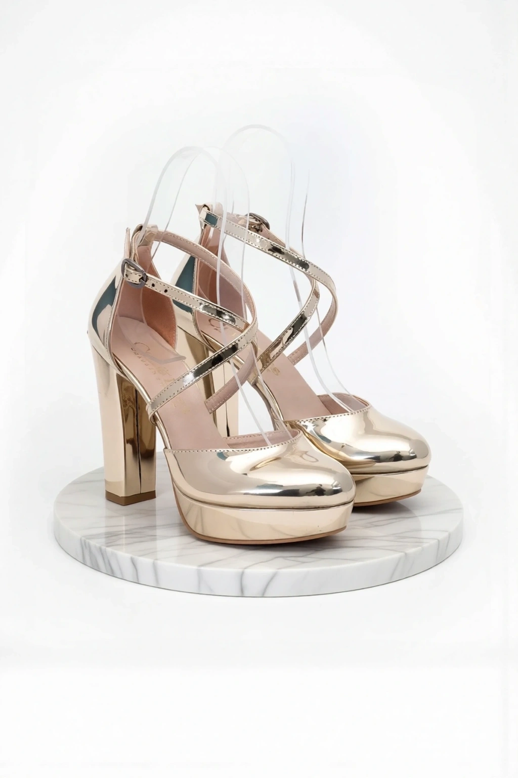 Gold Ayna Kadın Abiye Ayakkabı modeli, şıklığı ve konforu bir araya getirerek özel günler, davetler ve gece organizasyonları için ideal bir tercihtir. Modern tasarımı ve kaliteli yapısı sayesinde stilinize zarafet katar. Topuklu yapısıyla duruşunuzu güzelleştirirken, rahat kalıbı ile gün boyu konfor sunar.
