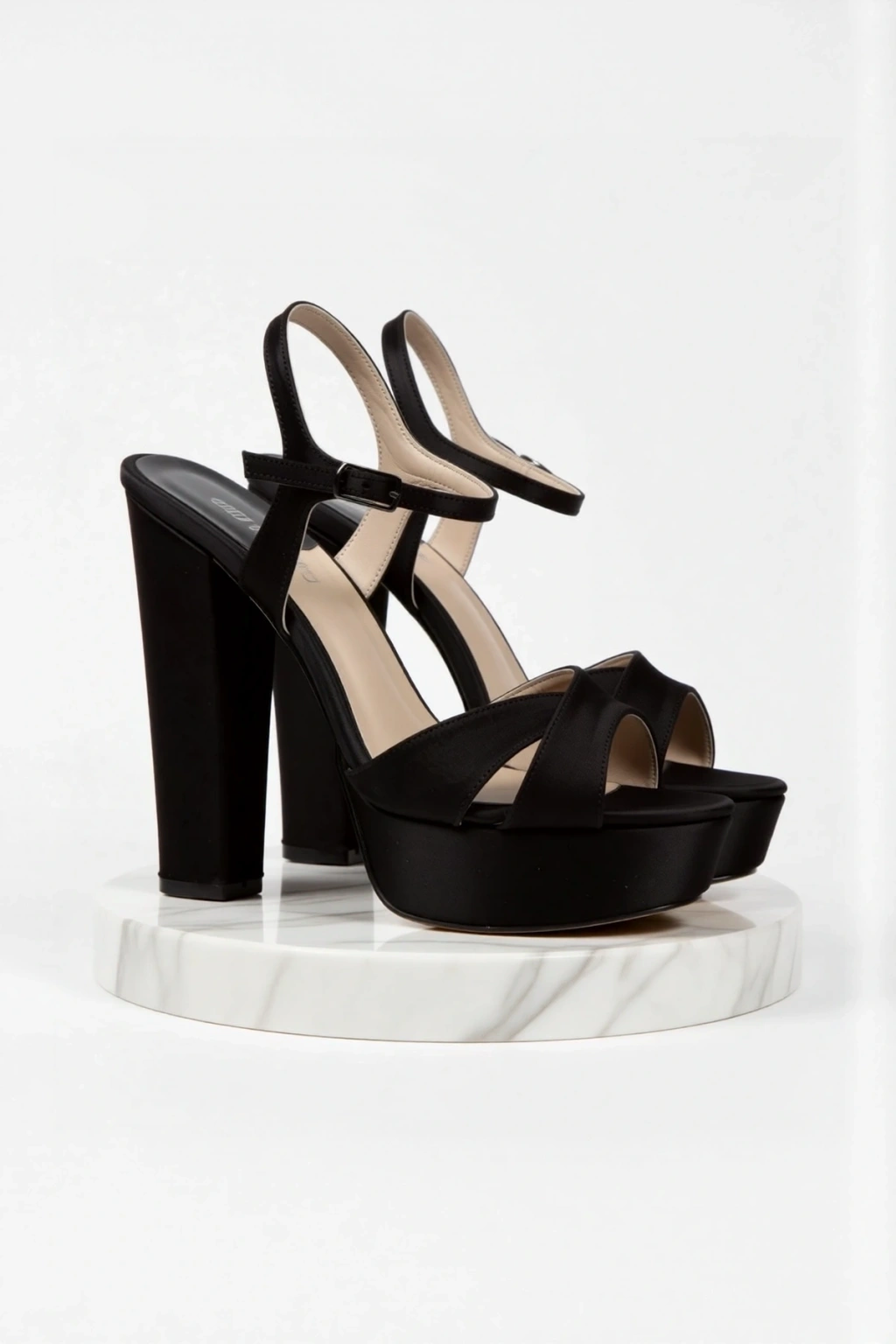Saten dokusuyla zarif bir görünüm sunan siyah abiye ayakkabı, özel günlerinizde şıklığınızı tamamlar.