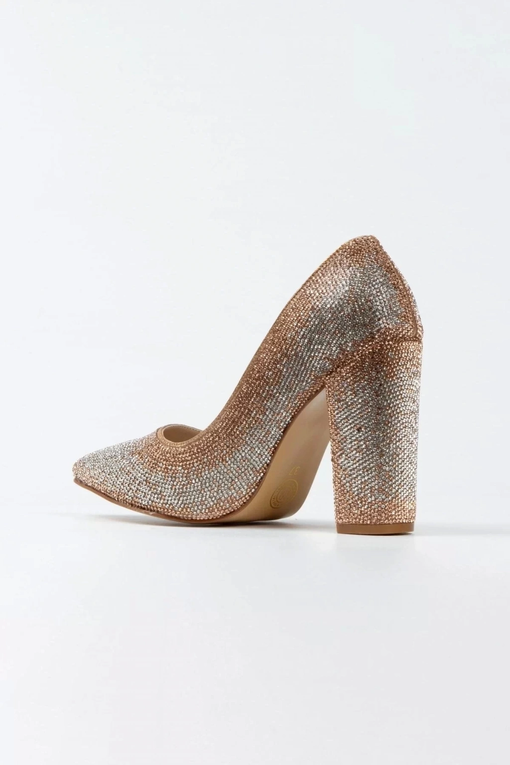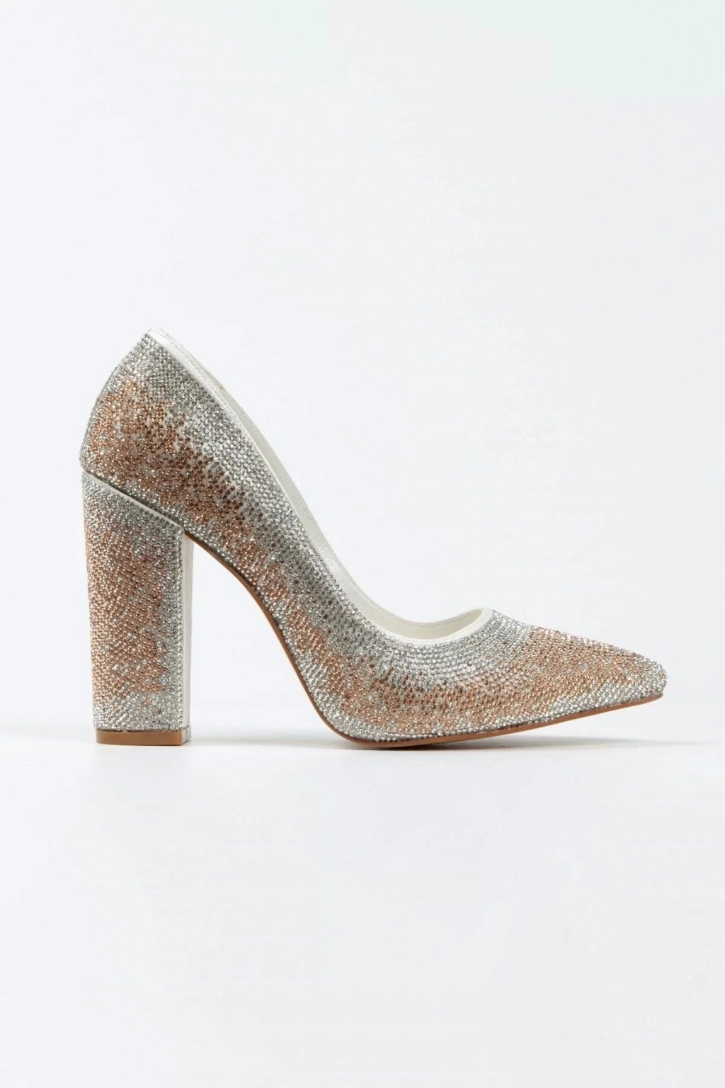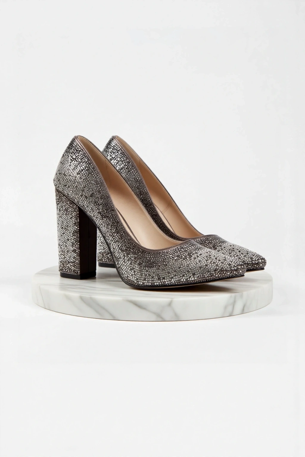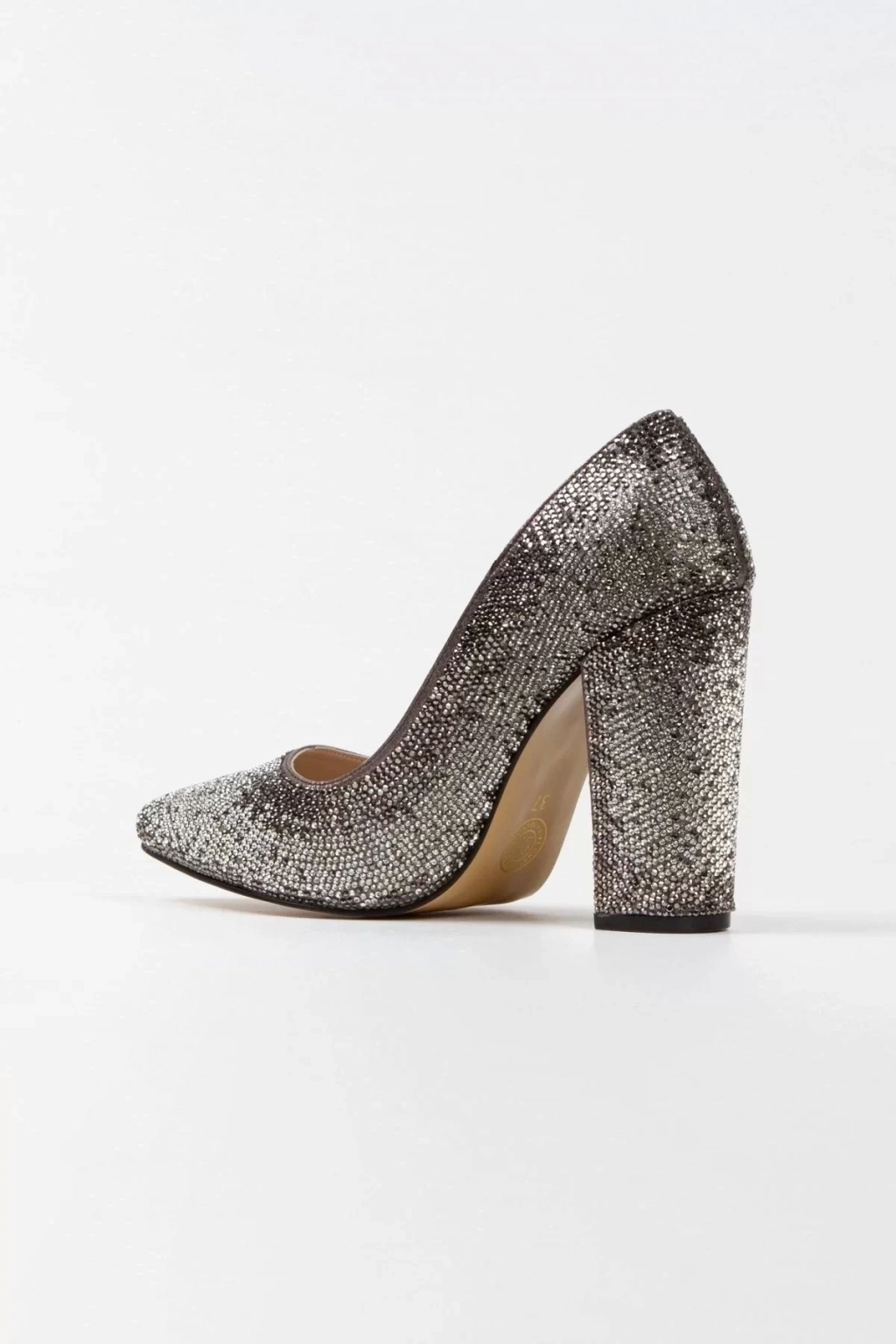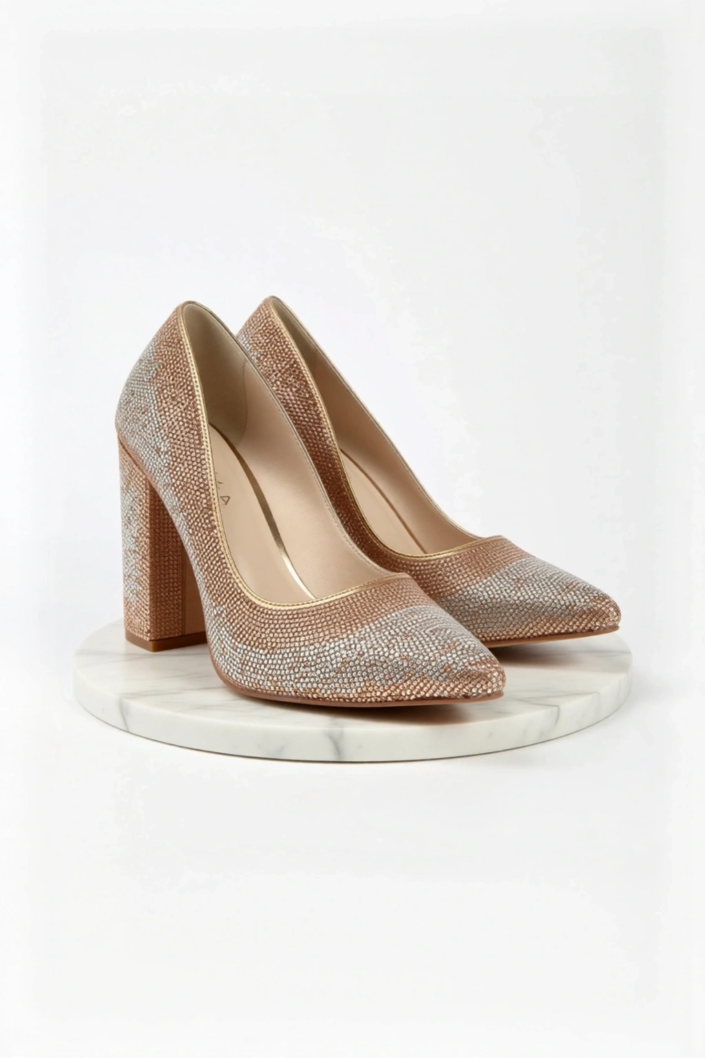 Gece davetlerinde ve özel etkinliklerde göz alıcı bir görünüm sunan bu ayakkabı, kalın topuklu yapısıyla hem rahatlık hem de zarafet vaat ediyor.