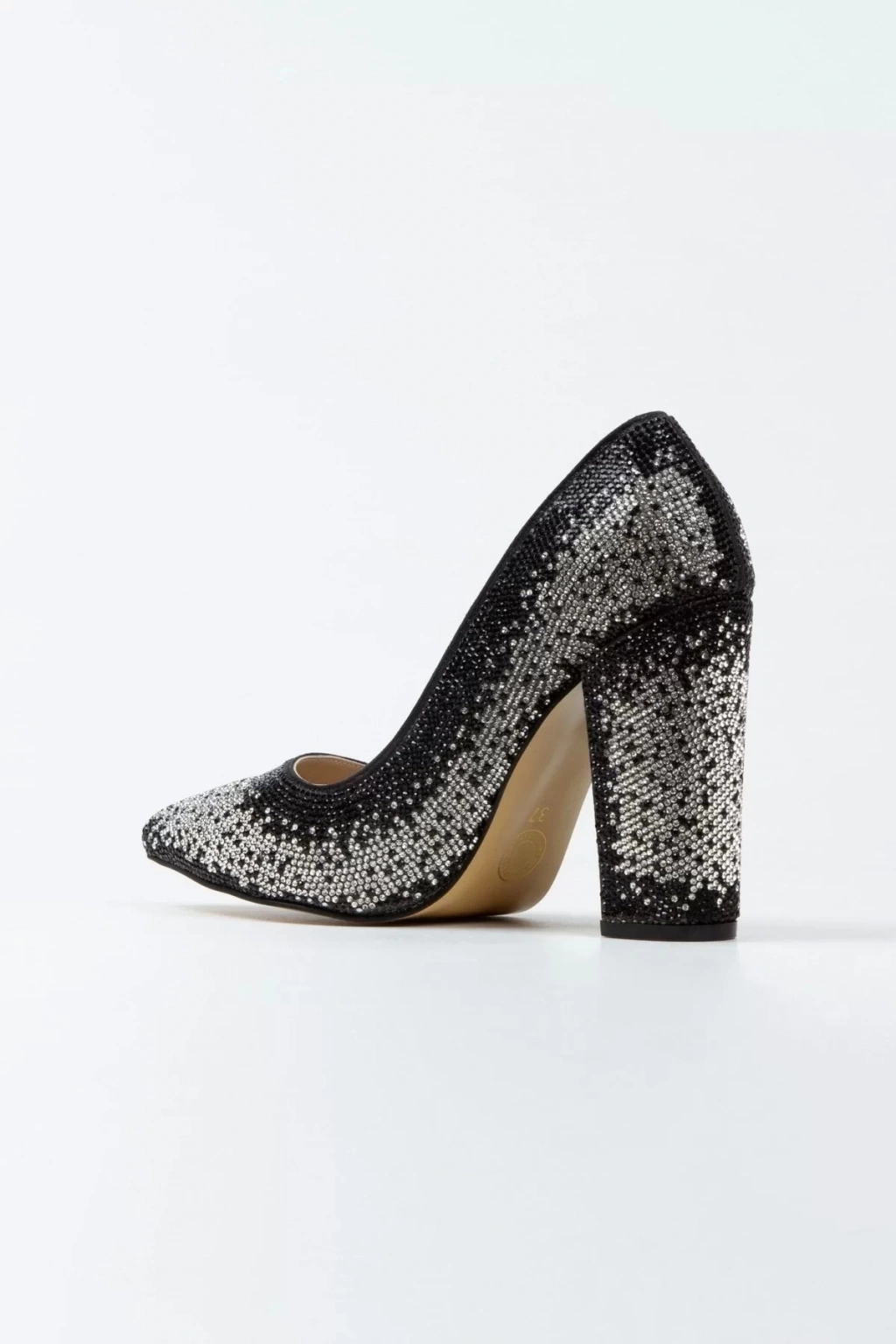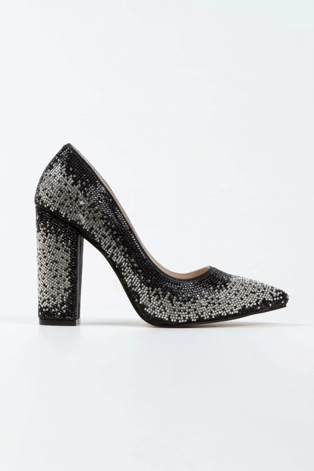 Zarif tasarımıyla dikkat çeken siyah sultan çift renktaşlı klasik sivri kalın topuklu kadın abiye ayakkabı, şıklığınızı tamamlayacak.