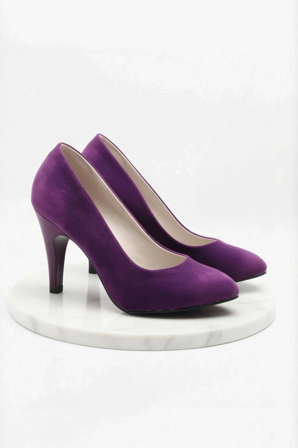 Süet materyali ile zarif bir görünüm sunan klasik topuklu ayakkabı, şıklığınızı tamamlar.