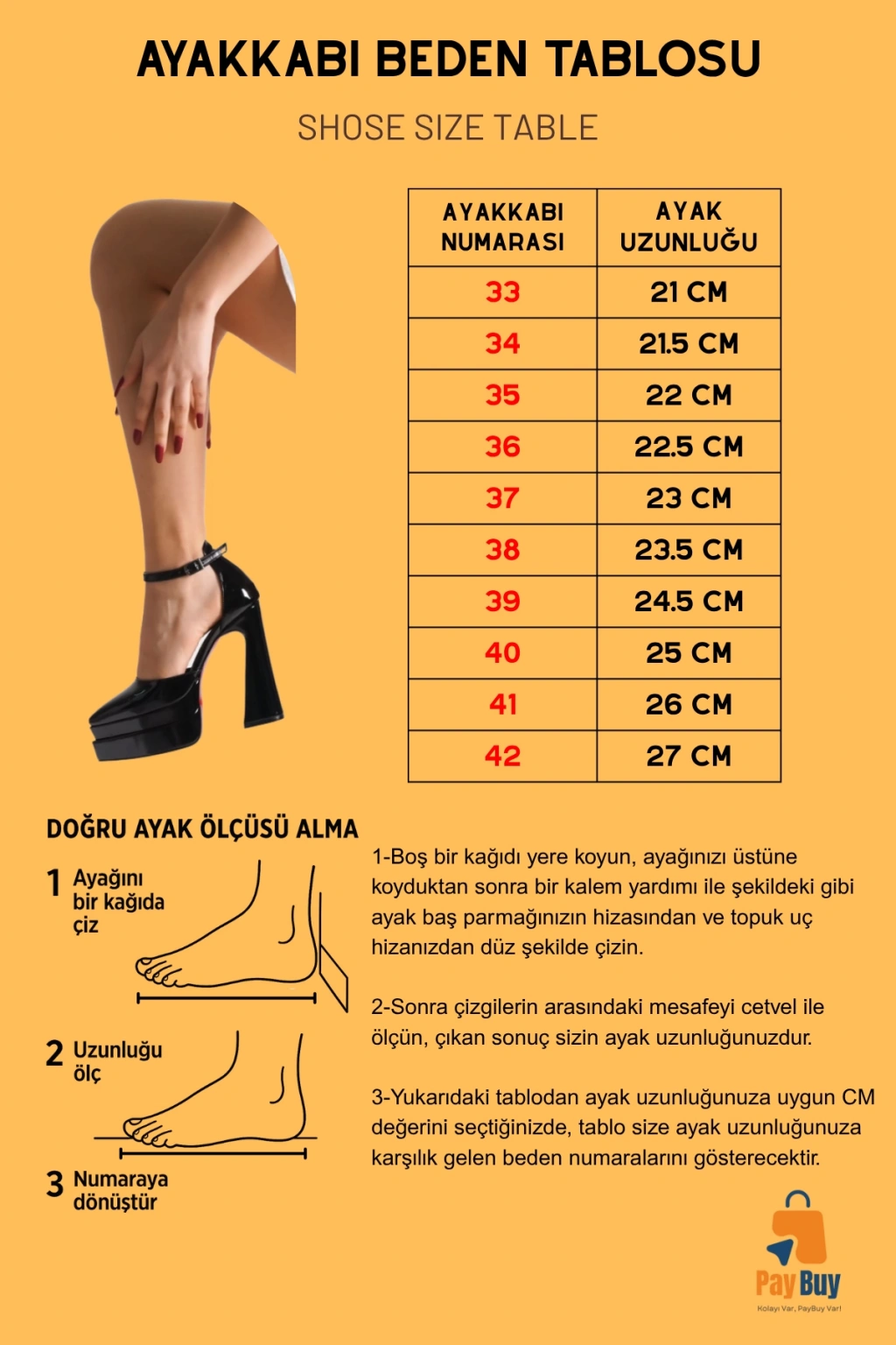 Ayakkabı Beden Tablosu: