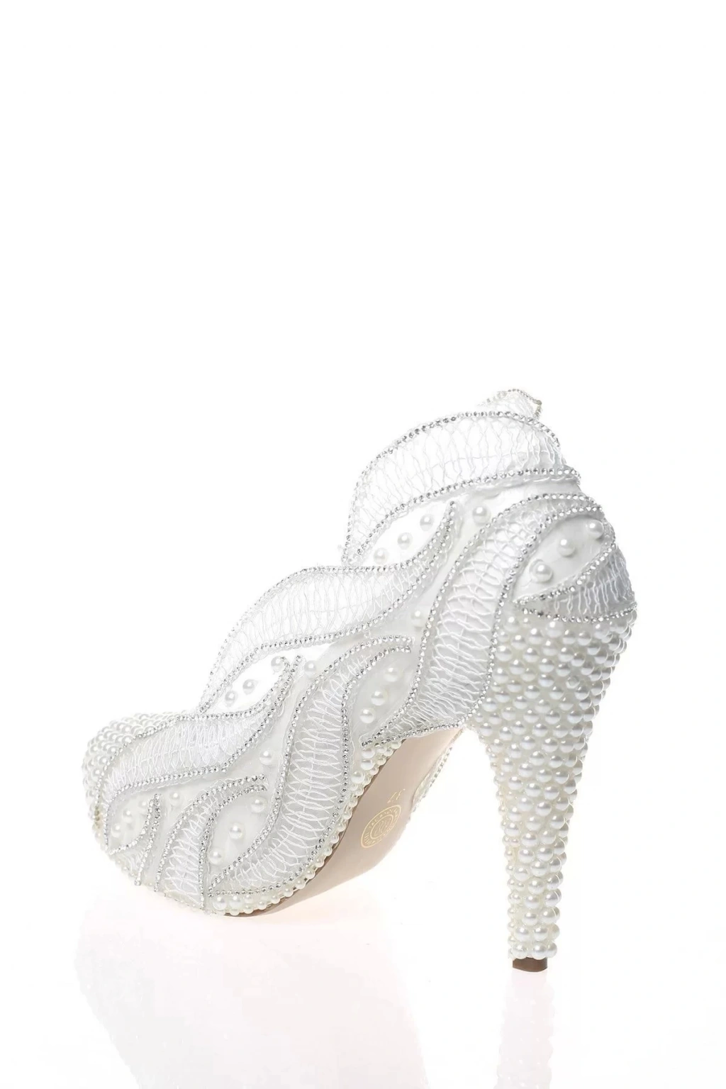 Zarif tasarımıyla dikkat çeken bu gelin ayakkabısı, yüksek topuklu (10 cm ve üzeri) yapısıyla şıklığınızı tamamlar.