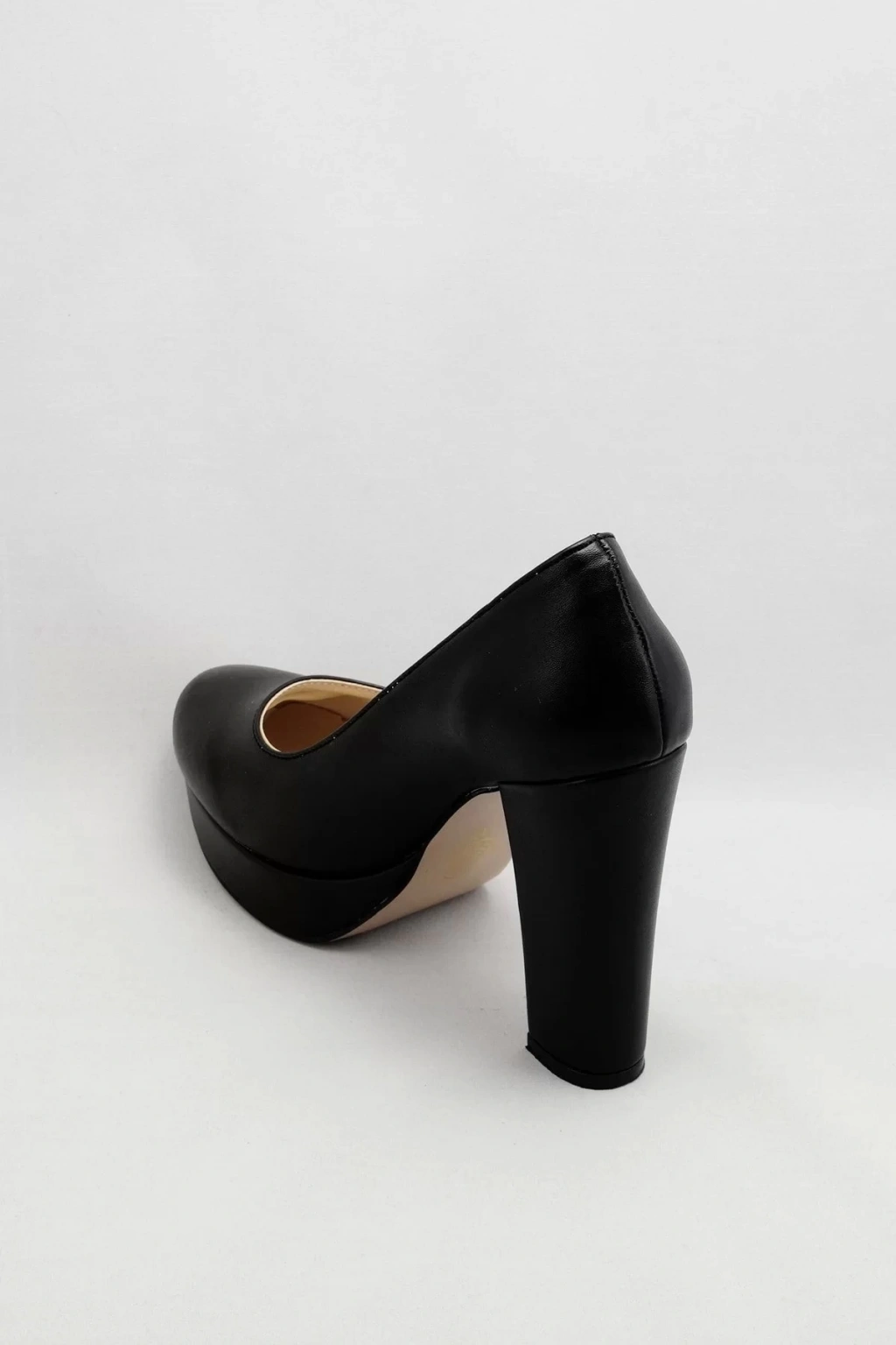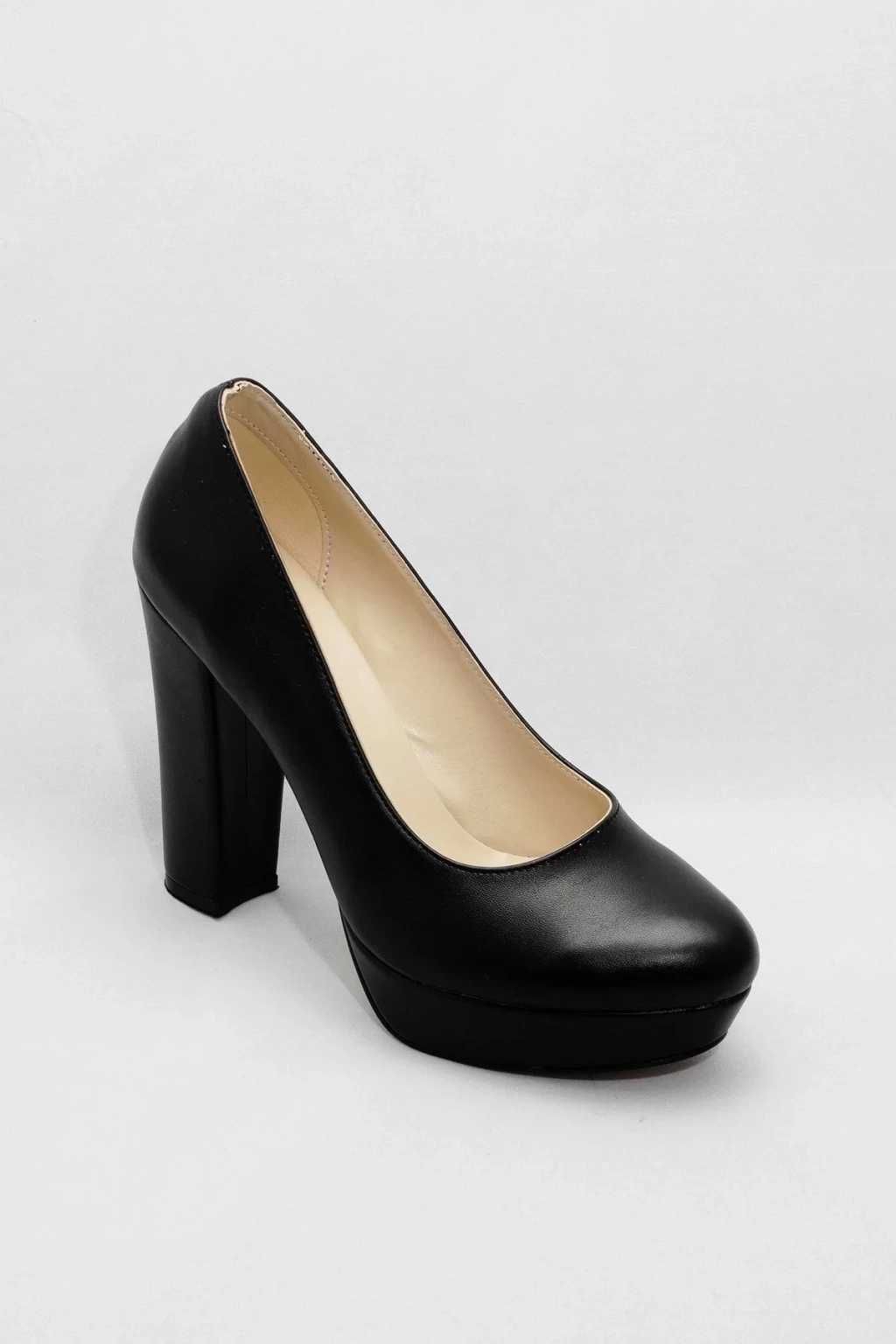 Klasik ve zamansız tasarımıyla her kıyafetle uyum sağlayan düz desenli siyah topuklu ayakkabı, şıklığınızı tamamlar.