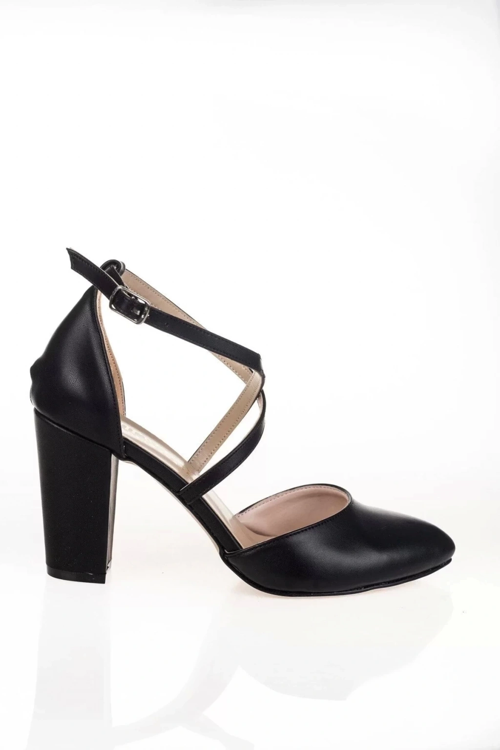 Klasik ve zamansız tasarımıyla her kıyafetle uyum sağlayan düz desenli siyah topuklu ayakkabı.