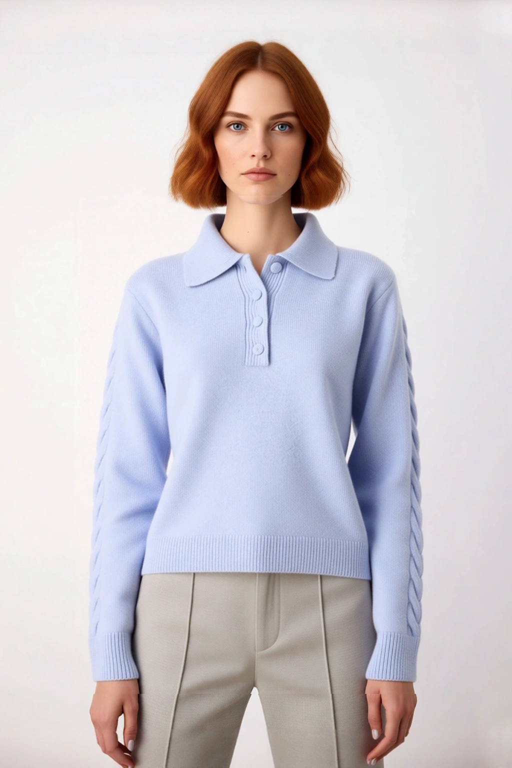 Polo yaka tipi, klasik kazaklara modern bir dokunuş katarken, hem spor hem de daha resmi ortamlara uyum sağlayabilecek çok yönlü bir stil sunar. Standart kol yapısı, doğal hareket kabiliyetinizi destekler ve uzun kol boyu ile kış aylarında tam koruma sağlar. Orta kalınlıktaki triko kumaşı, nefes alabilir özelliği sayesinde gün boyu konforlu bir kullanım vaat eder ve terletme yapmaz. Tek plaka dokuma tekniği, ürünün dayanıklılığını artırır ve uzun süreli kullanımlarda bile ilk günkü formunu korumasına yardımcı olur. Makinede yıkanabilir olması, yoğun yaşam tarzına sahip Kadınlar için pratik bir çözüm sunar.