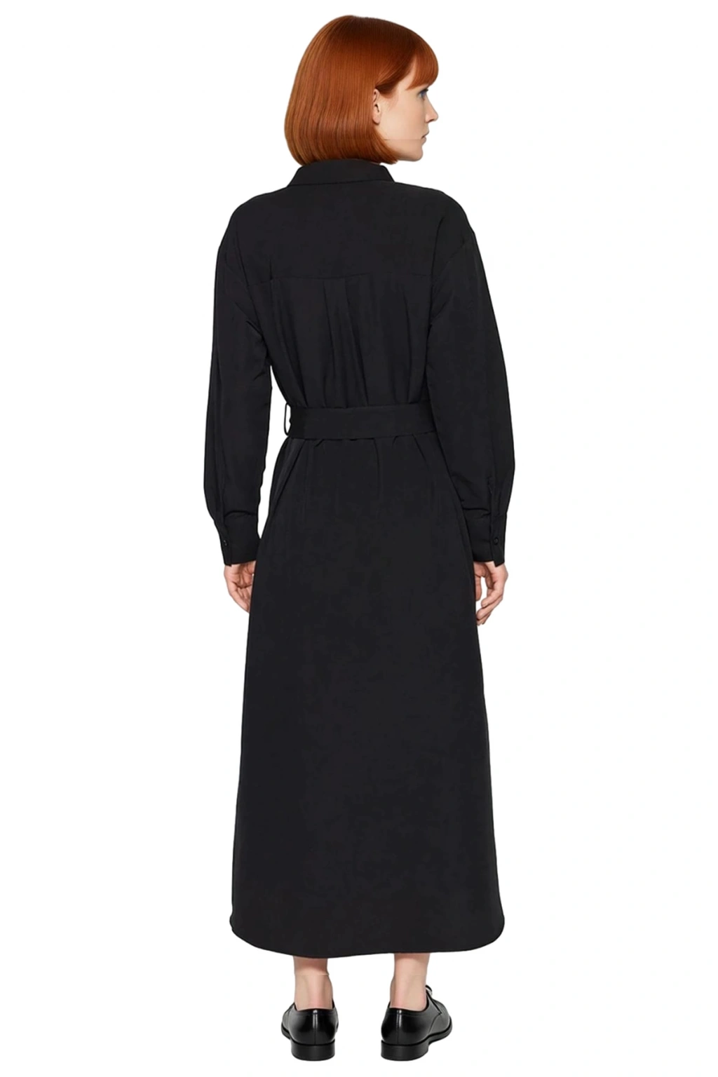 Önden boydan boya uzanan düğme detayları, elbiseye hem işlevsellik hem de şık bir dokunuş katarken, klasik gömlek yaka tasarımı sofistike bir duruş sergiler. Standart uzun kol yapısı, manşet detaylarıyla tamamlanarak zarif bir görünüm sunar. Beldeki kuşak, siluetinizi istediğiniz gibi şekillendirmenize olanak tanırken, astarsız yapısı sayesinde hafif ve konforlu bir kullanım sağlar. Terrycotton dokuma kumaşın dayanıklılığı ve kolay bakımı, bu elbiseyi gardırobunuzun vazgeçilmez bir parçası yapar.