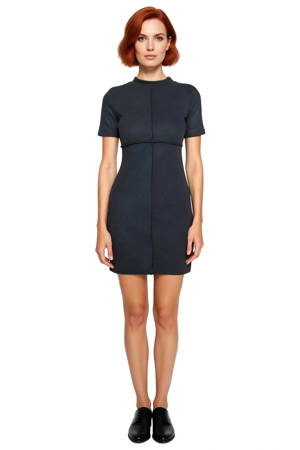 Dik yaka kesimi, modern ve stil sahibi bir görünüm sunarken, kısa standart kol boyu özellikle geçiş mevsimlerinde veya katmanlı giyimde idealdir. Örme kumaş yapısı sayesinde nefes alabilen ve esnek bir kullanım imkanı sunar. Astarsız ve cepsiz tasarımı, hafifliğini ve akıcı siluetini destekler. Ürünün nervürlü ve dıştan belirgin dikiş detayları, sıradanlıktan uzaklaşan özgün bir estetik sunar. Yüksek kaliteli polyester materyali uzun süreli kullanım için dayanıklılık sağlarken, T10 yıkama talimatı ile kolayca temizlenebilir.