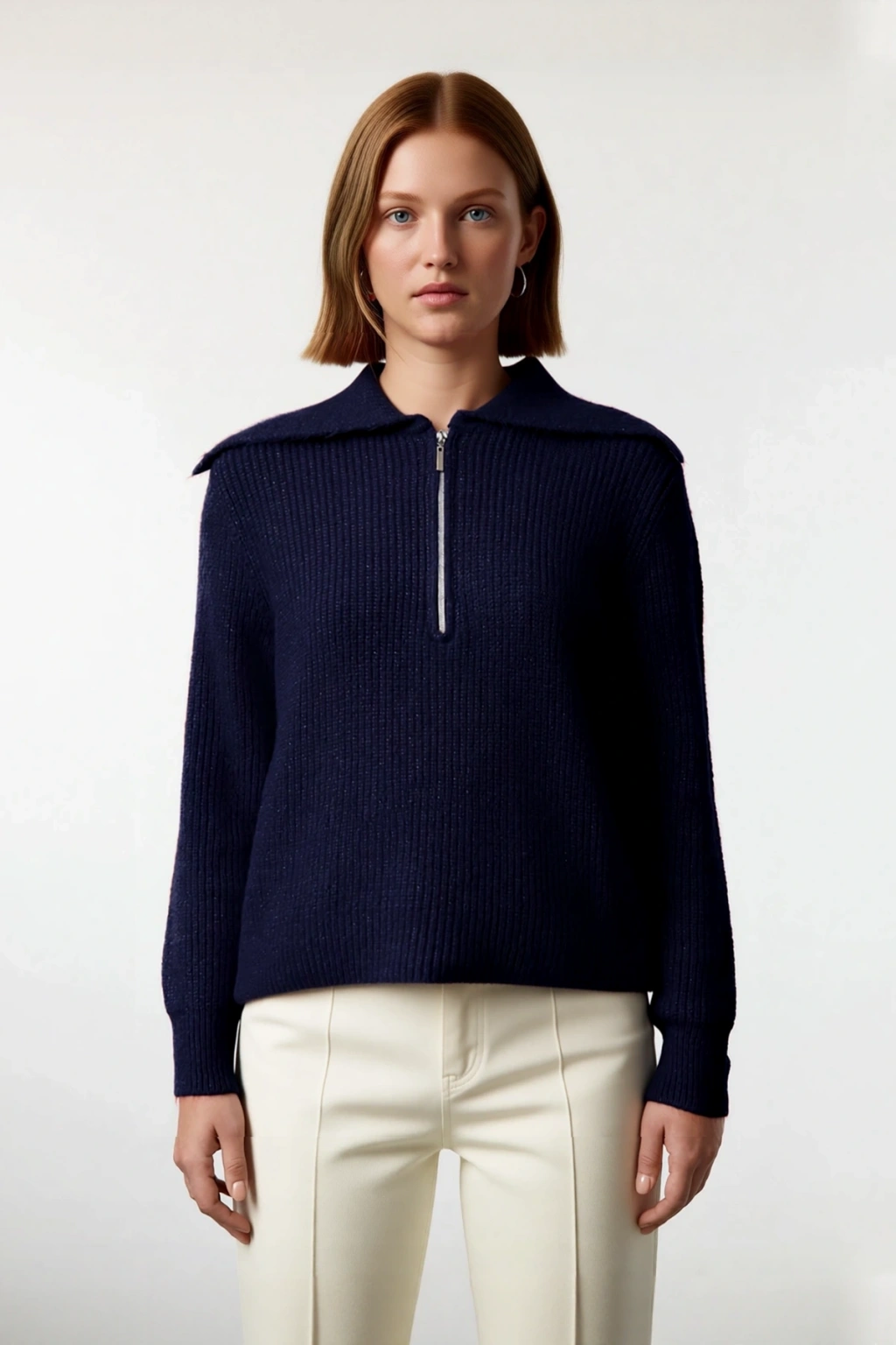 Bu triko kazağın öne çıkan özelliklerinden biri, modern fermuarlı polo yaka tasarımıdır. Bu yaka tipi, hem boynunuzu soğuktan korur hem de stilinize sofistike bir dokunuş katar. Standart kol tipi, klasik bir görünüm sunarken, uzun kol boyu tam bir kapsama ve sıcaklık sağlar. Selanik dokuma triko kumaş yapısı, kazağın orta kalınlıkta olmasını garantiler; bu da onu ne çok ağır ne de çok ince yapar. Basic silueti ve dayanıklı materyal karışımı sayesinde uzun ömürlü kullanım sunar. Ayrıca kolay bakım özellikleri ile pratik bir kullanım deneyimi sunar.