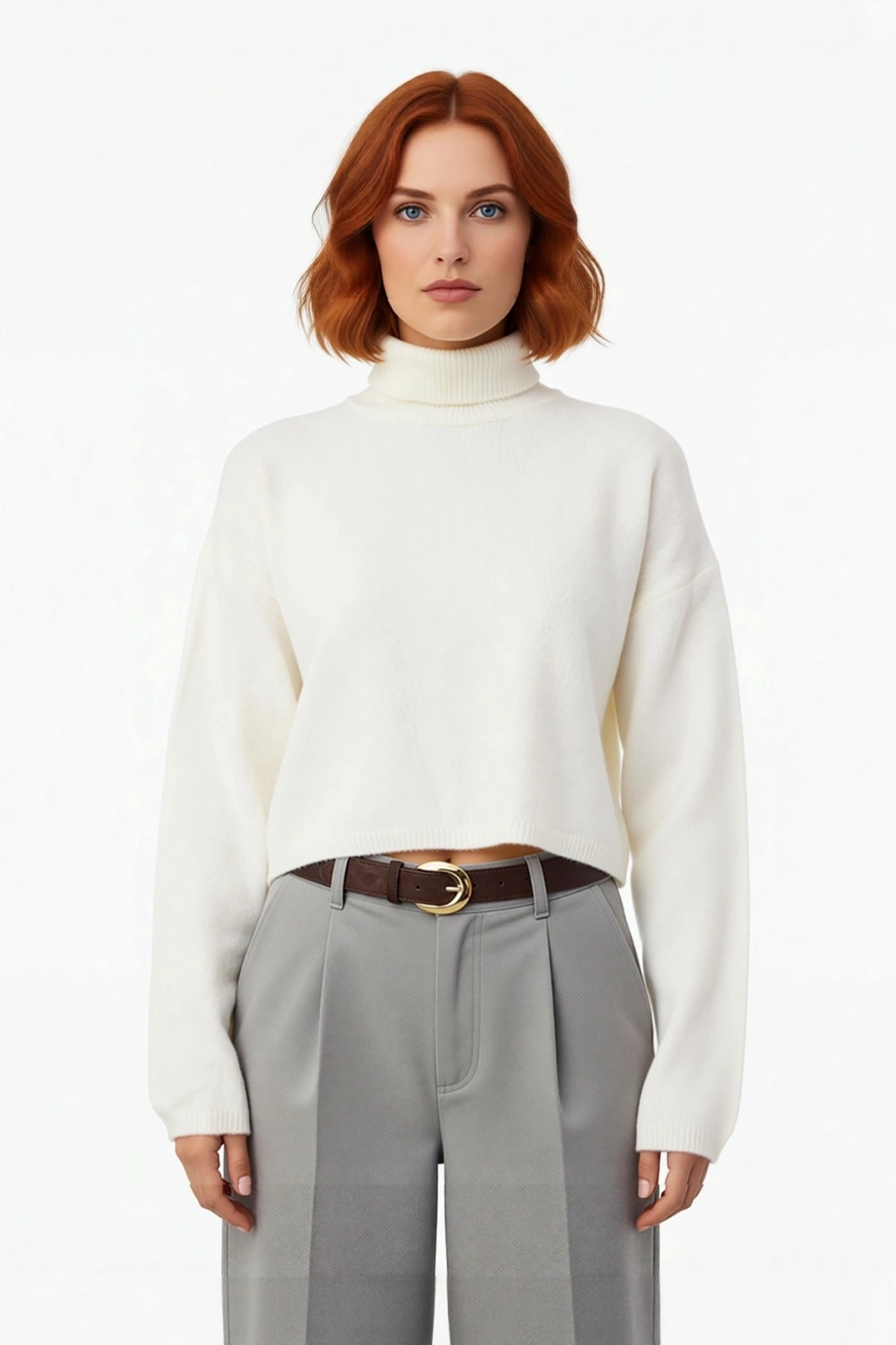 Balıkçı yaka tasarımı, boynunuzu soğuktan korurken şık bir duruş sergiler. Düşük kol ve uzun kol yapısı, oversize kalıp ile birleşerek rahat bir kullanım sunar ve hareket özgürlüğünüzü kısıtlamaz. Orta kalınlıktaki triko kumaş dokusu, nefes alabilen yapısıyla gün boyu konfor sağlarken, tek plaka dokuma tipi de kaliteli işçiliği yansıtır. Süper crop boyu, modern ve genç bir siluet oluşturarak yüksek bel pantolon veya eteklerle mükemmel bir uyum yakalar. Bakımı oldukça kolay olan bu ürün, belirtilen yıkama talimatlarına uygun şekilde makinede yıkanabilir.