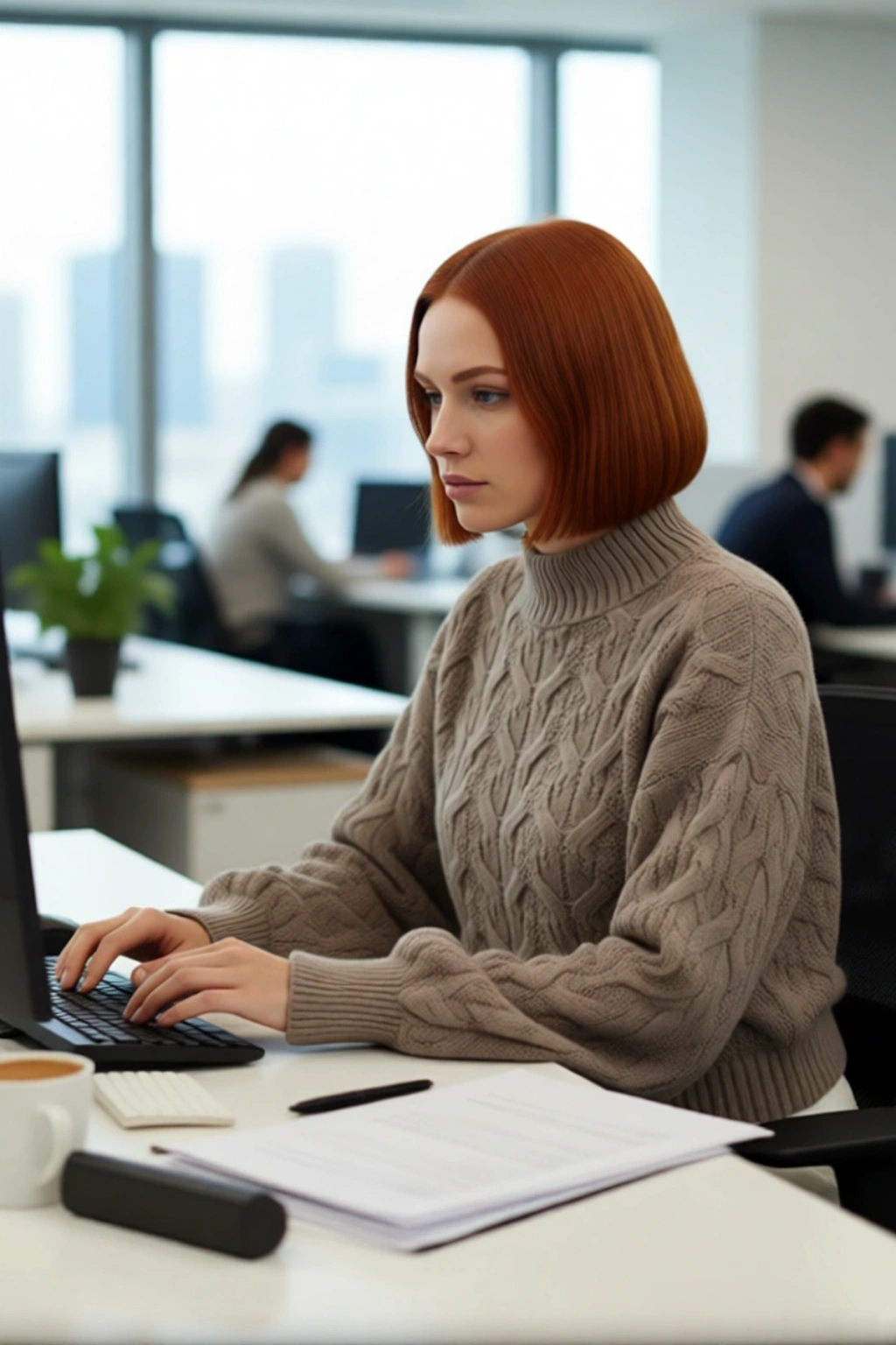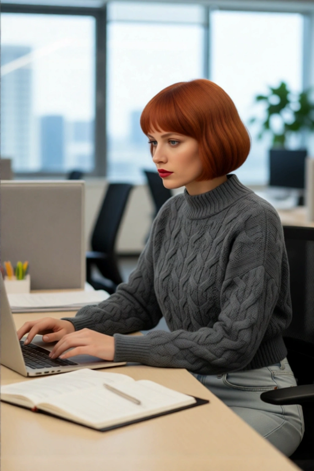 Ürün Özellikleri: Oversize kalıp, akrilik materyal, saç örgü desen, dik yaka, balon kol, triko kumaş, gri renk.
